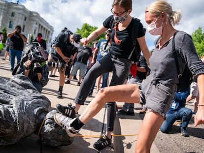 Plymouth, en la costa de Massachusetts, es un distinguido pueblo entregado al negocio de la memoria. Esta semana es hora punta allí. Hace 401 años que el Mayflower tocó tierra cerca con su cargamento de peregrinos ingleses que huían de la persecución religiosa en busca de una nueva vida. Una modesta roca protegida por una columnata neoclásica recuerda frente al mar el sitio en el que supuestamente desembarcaron. También hace 400 años del encuentro entre aquellos colonos y un puñado de nativos, origen histórico de la Acción de Gracias, fiesta que hoy paraliza el país y que, más que ninguna otra, reúne el cuarto jueves de noviembre a los estadounidenses alrededor de una mesa, incluso en tiempos tan polarizados como estos. Pero para la nación Wampanoag, que habita la península con forma de garfio de Cape Cod desde hace 12.000 años, no es un día de celebración. Centenares de ellos se manifestarán a mediodía por las calles de Plymouth para conmemorar el National Day Of Mourning, su particular jornada de luto nacional. Servirá para protestar, según reza la convocatoria, por “el genocidio de millones de nativos, el robo de sus tierras y el borrado de su cultura”.