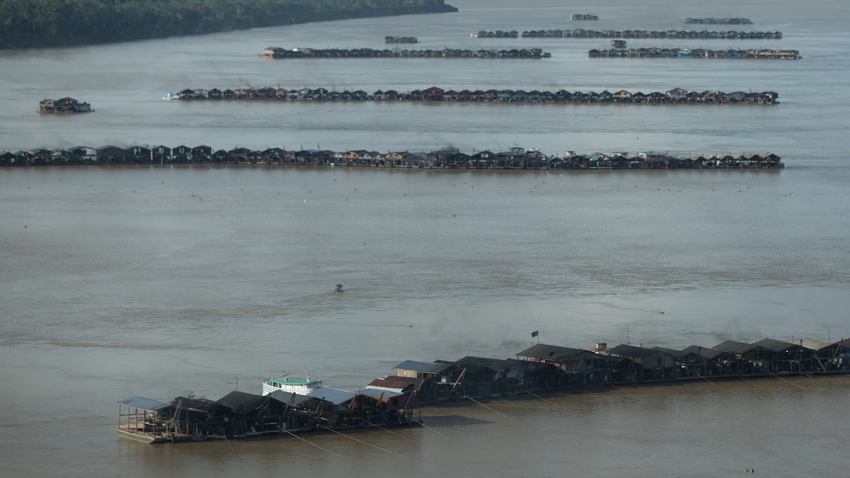 Las imágenes tomadas por la ONG muestran varias hileras de dragas y remolcadores de empuje, equipos que excavan el lecho del río en busca de mineral, colocados en el río Madeira, cerca de la comunidad de Rosarinho, en la ciudad de Autazes del Estado de Amazonas, a 110 kilómetros de la capital Manaos.