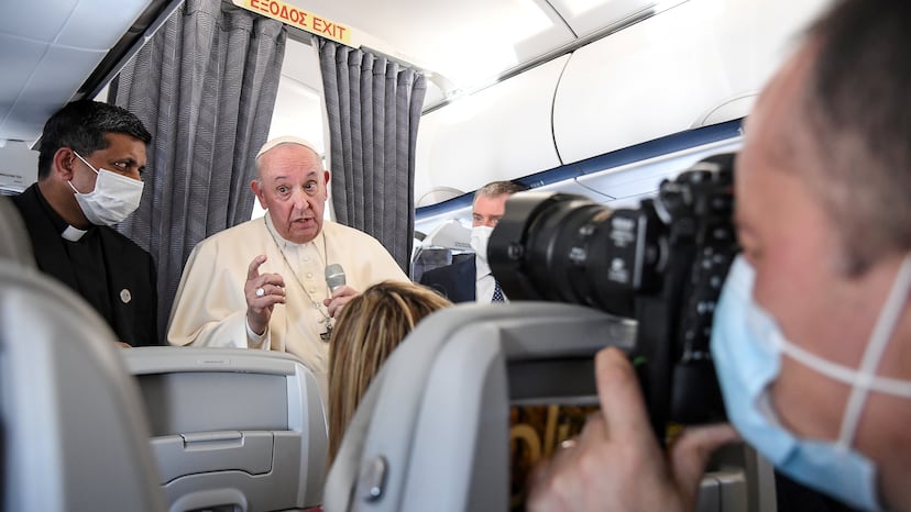 Francisco insiste en la rueda de prensa de su regreso de Grecia y Chipre en que los abusos de hace 70 años y el encubrimiento de entonces no pueden juzgarse con la óptica actual