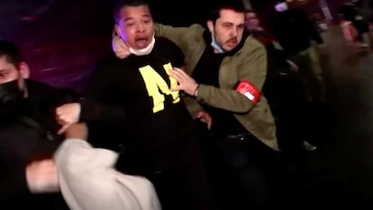 No había acabado Éric Zemmour de arremeter contra los inmigrantes, el islam y hasta la prensa en su primer mitin de campaña, el domingo, cuando la violencia estalló entre las últimas filas de la gigantesca sala del parque de exposiciones de Villepinte, en las afueras de París, hasta donde habían acudido más de 12.000 seguidores del candidato presidencial de ultraderecha francés. Un grupo de activistas de la organización SOS Racismo se subió a las sillas para mostrar unas camisetas con el mensaje “no al racismo”. La reacción fue inmediata: mientras el equipo de seguridad trataba de sacarlos de la sala, numerosos asistentes que los rodeaban comenzaron a increparlos, a golpearlos y hasta a lanzarles sillas.