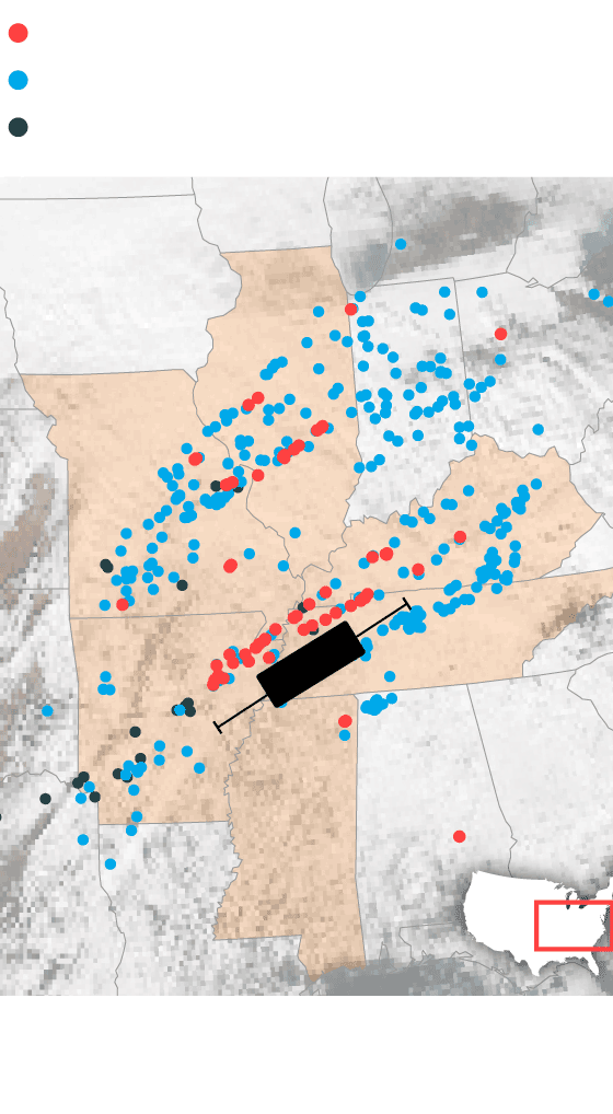 Aunque la mayor parte de los tornados se producen en los meses de primavera (un 52% del total), especialmente en abril (22,5%), el Servicio Nacional de Meteorología de Estados Unidos destaca que existe una “temporada de tornados secundaria” en noviembre y diciembre en el sureste del país. “El 21% de los tornados se originan en los últimos meses de otoño y principios de invierno, y el 16,9%, en noviembre y diciembre”, destaca el organismo. De hecho, según subraya, “algunos de los tornados más dañinos y mortales” se han formado precisamente en los últimos meses del año.