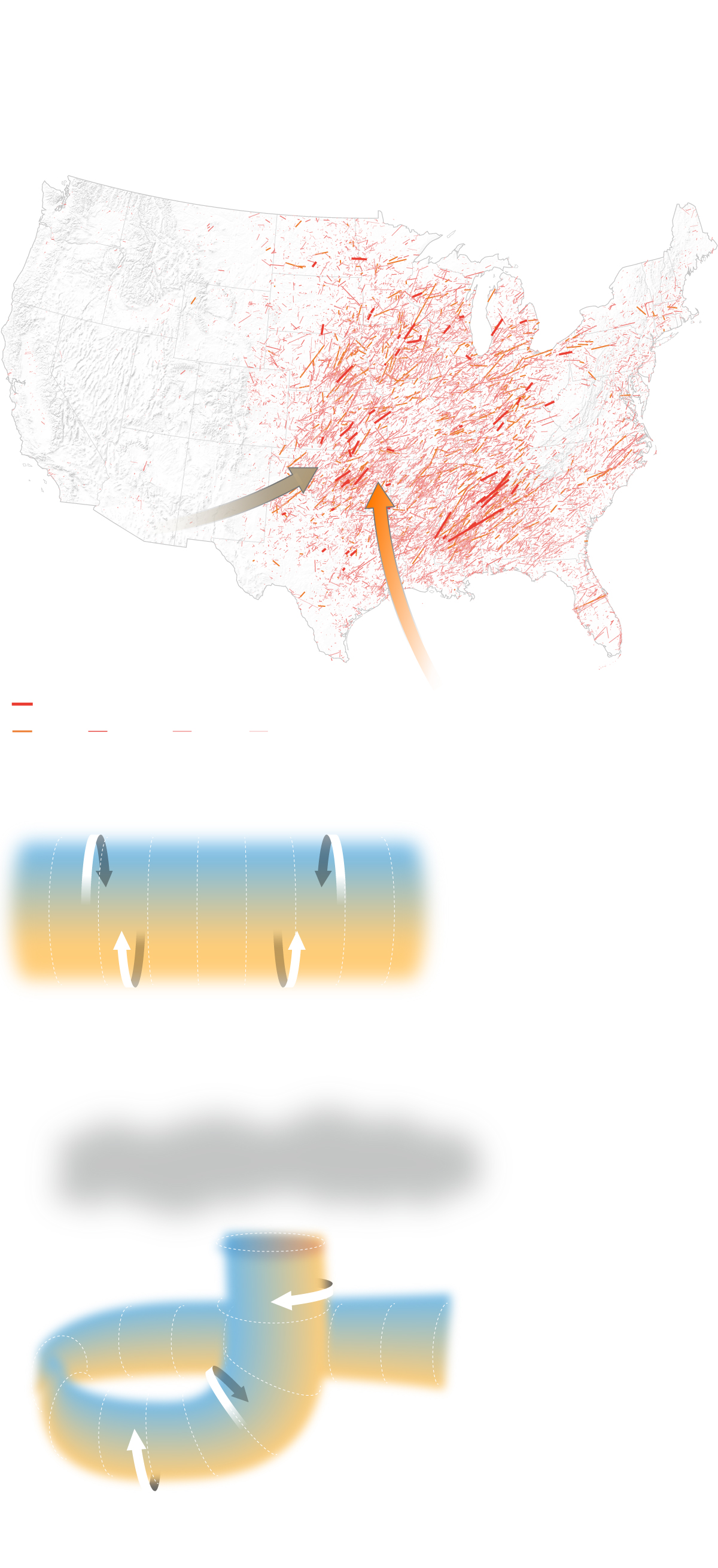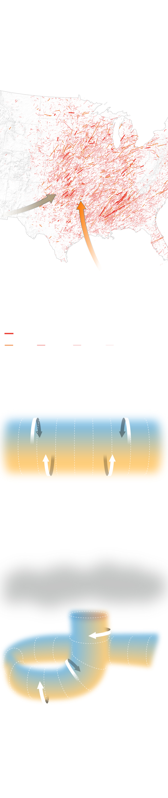 Pero no todos son tan virulentos como la cadena que acaba de asolar el centro del país, una zona conocida como “el corredor de tornados”, porque concentra el 90% de este tipo de fenómenos, según los datos del Laboratorio Nacional de Tormentas Severas de Estados Unidos (NSSL, por sus siglas en inglés). El motivo responde a su ubicación geográfica: un lugar en el que convergen los vientos calientes y secos del oeste con los calientes y húmedos que llegan desde el golfo de México.