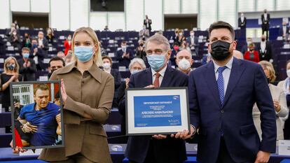 La entrega del premio a Navalni está envuelta en la tensión entre la Unión Europea y el régimen de Vladímir Putin. El aumento de tropas rusas en la frontera con Ucrania y el fantasma de una invasión ha añadido hostilidad en las últimas semanas en unas relaciones que ya estaban envenenadas en octubre, cuando se supo que el opositor ruso era el premiado este año con el máximo galardón de la Unión Europea. Entonces era la situación en la frontera entre Bielorrusia y países de la UE como Polonia y Lituania, que veían como el régimen Aleksandr Lukashenko favorecía la inmigración irregular hacia estos países a través de sus fronteras con movimientos que se han venido a llamar “ataques híbridos”. Precisamente este dictador ha sido uno de los ejemplos utilizados por Naválnaya para explicar por qué contemporizar no funciona con los regímenes autoritarios. Ella ha recordado que cuando “los pragmáticos” pedían no presionar al dictador de Minsk, él obligó a aterrizar a un avión y detuvo a un periodista. A estos focos de tensión se añade en los últimos días los castigos impuestos a la red rusa de mercenarios conocida como Wagner, acusada de graves crímenes de guerra en los países donde opera.