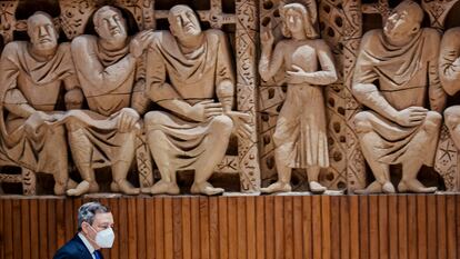 El delicado juego de orfebrería política para encontrar al sucesor de Sergio Mattarella al frente de la presidencia de la república italiana, que se escenifica en el Parlamento y en los salones del poder, ya ha comenzado, pese a que es un largo proceso y las votaciones oficiales no se abren hasta mediados de enero. Por ahora no hay ningún nombre firme sobre la mesa, pero el del actual primer ministro, Mario Draghi, de 74 años, suena con fuerza desde hace tiempo. Italia está en pleno proceso de reformas para asegurar la buena marcha de las inversiones con los fondos europeos y aún queda un año de legislatura, lo que complica la batalla. Pero este miércoles, el expresidente del Banco Central Europeo, al frente del Ejecutivo italiano desde febrero, ha abierto por primera vez la puerta a presentarse como candidato a jefe del Estado. “Mi destino personal no cuenta. No tengo aspiraciones particulares de ningún tipo. Soy un hombre, si queréis, un abuelo al servicio de las instituciones”, ha deslizado, dando a entender que está disponible para convertirse en el próximo inquilino del palacio del Quirinal, sede de la presidencia de la República.