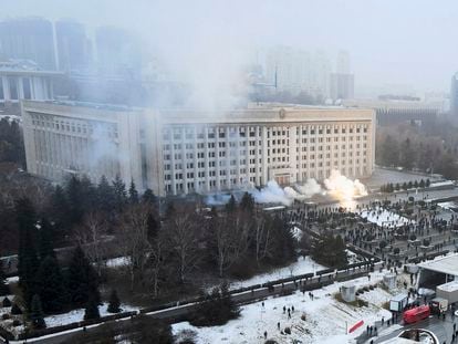 La misión de la CSTO refuerza la protección de Tokáyev y su círculo ante cualquier amenaza interna. El jefe del Comité para los Asuntos de la Comunidad de Estados Independientes (organización formada por nueve antiguas repúblicas soviéticas) de la Duma (Cámara baja del Parlamento ruso), Leonid Kalashnikov, recalcó esta semana que las tropas no se involucrarán en los enfrentamientos que tienen lugar ahora en las calles y solo se encargarán de proteger “infraestructuras y lugares estratégicos”.