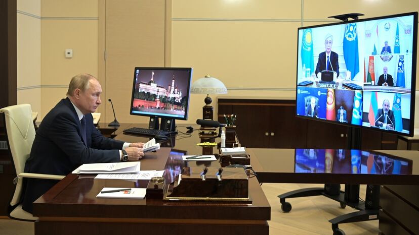 El presidente ruso, Vladímir Putin, ha advertido este lunes de que el envío de tropas de la Organización del Tratado de Seguridad Colectiva (CSTO) a Kazajistán es un aviso a los participantes en futuras protestas en su propio país. “Las acciones tomadas por la CSTO han mostrado claramente que no permitiremos desestabilizar la situación en nuestro hogar y que tampoco permitiremos que ocurra ese escenario al que llaman revolución de color”, ha declarado el mandatario durante una videoconferencia con los líderes de esa alianza militar. La presencia de los 2.500 militares extranjeros podría ser breve, según avanzó por su parte el presidente kazajo, Kasim-Yomart Tokáyev, quien aseguró que la situación ya está bajo control.