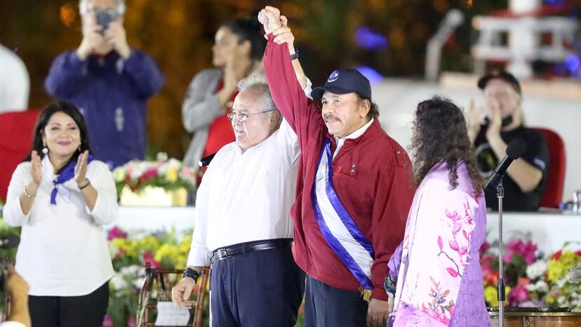 Daniel Ortega llegó más temprano de lo previsto a su acto de investidura, celebrado en la vieja Plaza de la Revolución Sandinista, en Managua. Lo acompañaba su esposa, la vicepresidenta Rosario Murillo, quien con severidad llamaba la atención de las edecanes que les mostraban el camino hacia la tarima. En el descampado de concreto, cuidadosamente acomodados en sillas vestidas de blanco con un listón azul, los asistentes esperaban a la pareja presidencial que venía a sellar su perpetuación en el poder, luego de encarcelar a todos sus opositores antes de las elecciones de noviembre pasado. El aforo lo llenaban simpatizantes sandinistas, funcionarios del Estado, policías y militares. En el sector de los invitados internacionales sobresalían dos expresidentes salvadoreños prófugos de la justicia, Salvador Sánchez Cerén y Mauricio Funes, activistas estadounidenses nostálgicos de la revolución sandinista y representantes de remotas naciones cuyos nombres no podía pronunciar el diputado oficialista Wilfredo Navarro, encargado de dar el recibimiento.