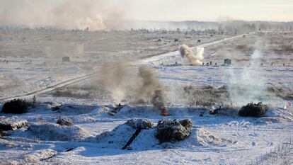 Esa estrategia inquieta en Kiev, donde prefieren llamar a la calma que apretar cada día el botón de alarma. Este domingo, el ministro de Exteriores, Dmytro Kuleba, ha recalcado que no hay señales de que se vaya a producir una nueva agresión militar a gran escala en los próximos días. No ha habido “cambio fundamental” en la situación, ha dicho Kuleba, que ha exigido una reunión con Rusia y el resto de los países firmantes del Documento de Viena de la OSCE (Organización para la Seguridad y la Cooperación en Europa), destinado a asegurar la transparencia militar. La petición se ha realizado después de que Moscú haya rehuido detallar sus actividades cerca de la frontera con Ucrania y en las maniobras masivas de 10 días que ha emprendido junto a Bielorrusia en ese país.