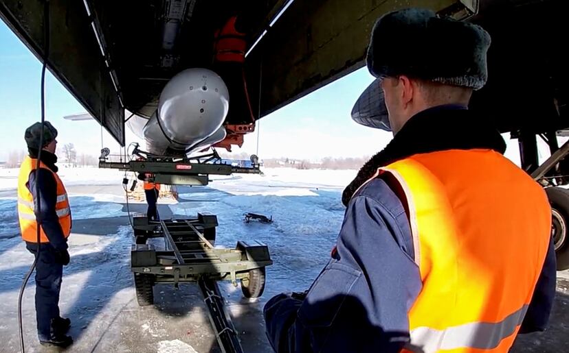 Sentado en la sala junto a Lukashenko, Putin observó cómo sus fuerzas dispararon todo tipo de cohetes de una punta a otra del país. Según el comunicado del Kremlin, las fuerzas aéreas rusas no solo “probaron con éxito” el lanzamiento de misiles hipersónicos Kinzhal, capaces de superar 10 veces la velocidad del sonido y alcanzar objetivos a 2.000 kilómetros de distancia, sino que sus bombarderos estratégicos Tu-95s también emplearon otro tipo de misiles lanzados desde el aire.