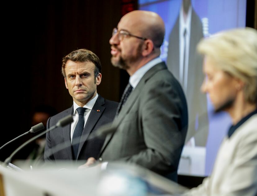 “Es una primera respuesta”, ha asegurado el presidente francés, Emmanuel Macron, en una comparecencia al término de la cumbre, a las dos y media de la madrugada, junto al presidente del Consejo Europeo, Charles Michel, y la presidenta de la Comisión, Ursula von der Leyen. Cariacontecido, Macron ha explicado su último intento de frenar a Putin a través de una infructuosa llamada telefónica este jueves. El intercambio, a petición de Zelenski, ha sido “franco, directo y rápido” para pedirle que frene lo antes posible los combates. “No ha producido efectos, como ven, por el momento”, ha dicho con gesto grave. “El presidente ruso ha elegido la guerra”.