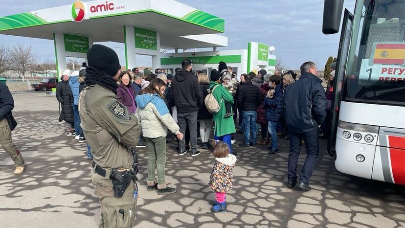 En la misma expedición viajaba la embajadora Silvia Cortés y el resto del personal de la Embajada, que ha sido cerrada. El convoy también fue auxiliado por las autoridades ucranias para sortear las colas.