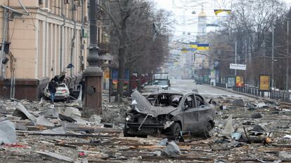La maniobra es otra señal más del cambio en la estrategia de Putin, que ha pasado a poner en su diana abiertamente zonas civiles y con armas cada vez más poderosas. Mientras avanza para tratar de hacer una pinza y aislar la región del Donbás y hacerse con el control de todo el este de Ucrania, Putin inició esta mañana otro intenso ataque contra un área residencial de la ciudad de Járkov, la segunda más grande en población del país (1,4 millones de habitantes) y de mayoría de habla rusa. La enorme explosión ha golpeado el centro de la localidad —sitiada desde hace tres días y con las fuerzas ucranias reprimiendo la ofensiva—, y ha alcanzado el edificio de la Administración Regional, según ha informado el Ministerio de Situaciones de Emergencia de Ucrania. Hay al menos siete muertos y varios heridos, según los servicios de emergencia.