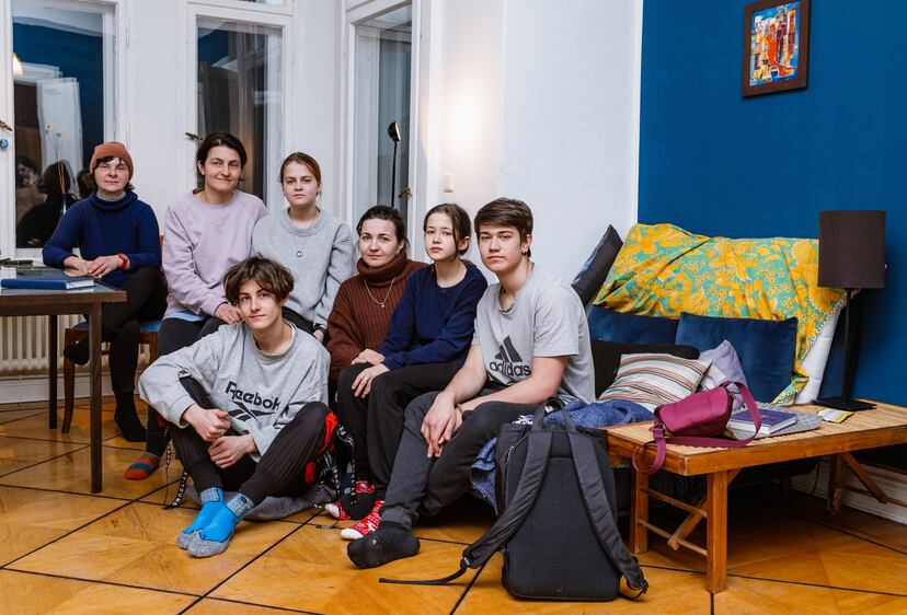 En Lviv, al oeste del país, durmieron en un gimnasio y, una vez cruzaron la frontera con Polonia en autobús, pernoctaron en una parroquia. Allí les recogió un amigo que les llevó en furgoneta hasta Berlín. En total les costó cinco días. “Volveremos en cuanto sea posible”, asegura convencida Savkevych en el salón de Elena Jerzdeva, que ha acogido por tiempo indeterminado a los seis refugiados en su casa del barrio berlinés de Hansaviertel. Jerzdeva, periodista bielorrusa que lleva casi 20 años viviendo en Alemania, trata ahora de conseguir ordenadores para que los cuatro adolescentes puedan seguir sus clases, y ya les ha buscado un profesor de alemán.