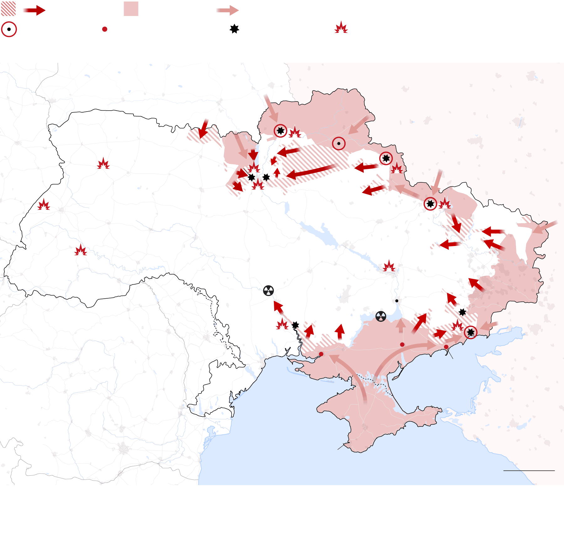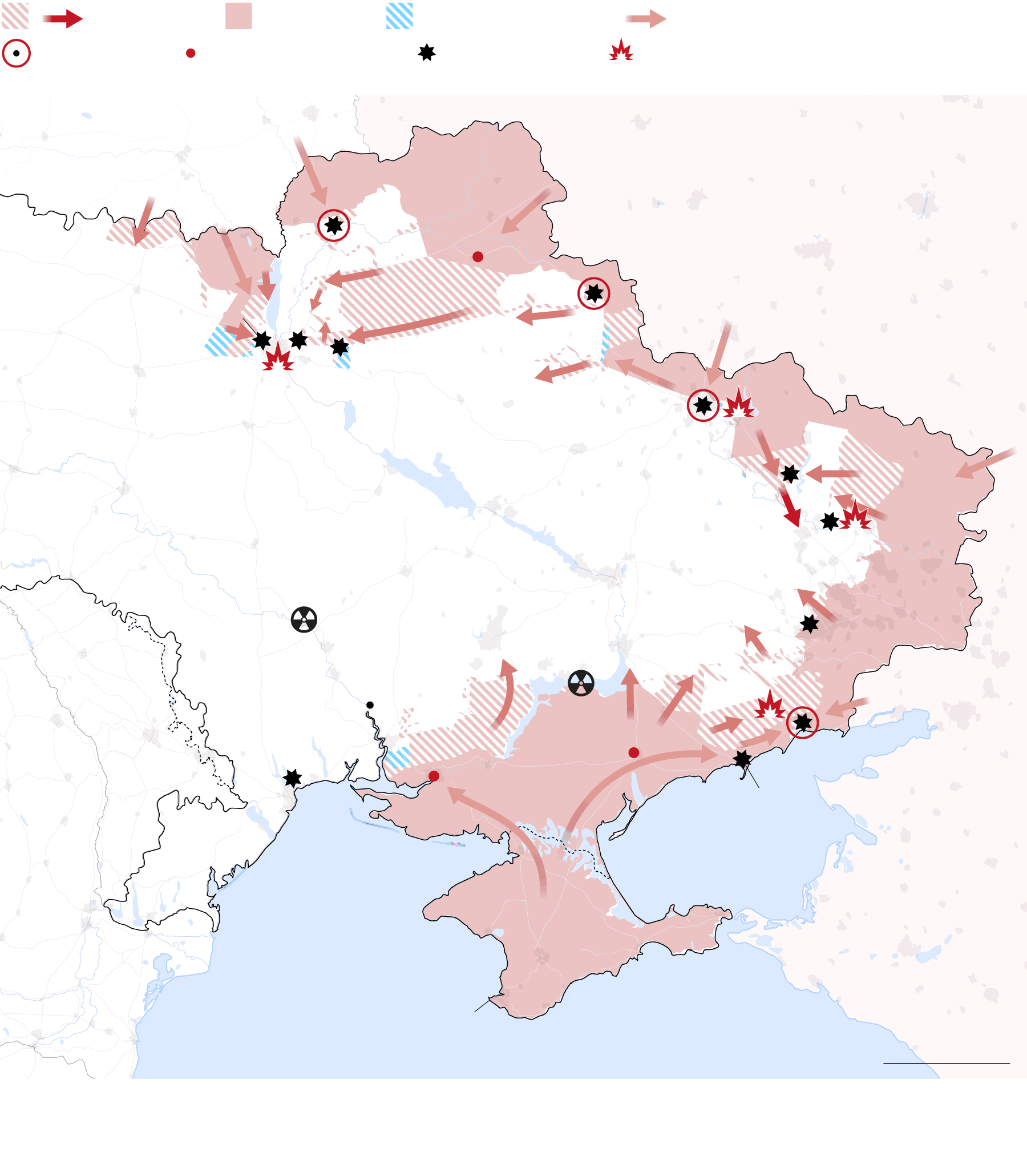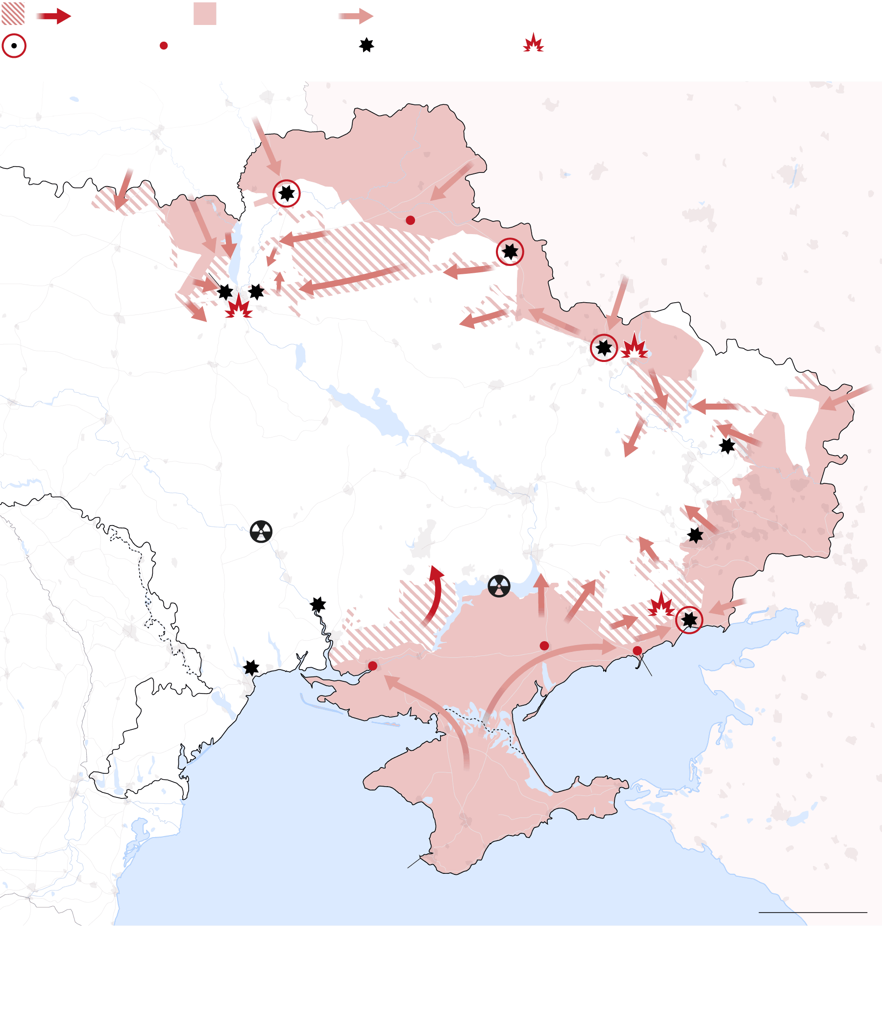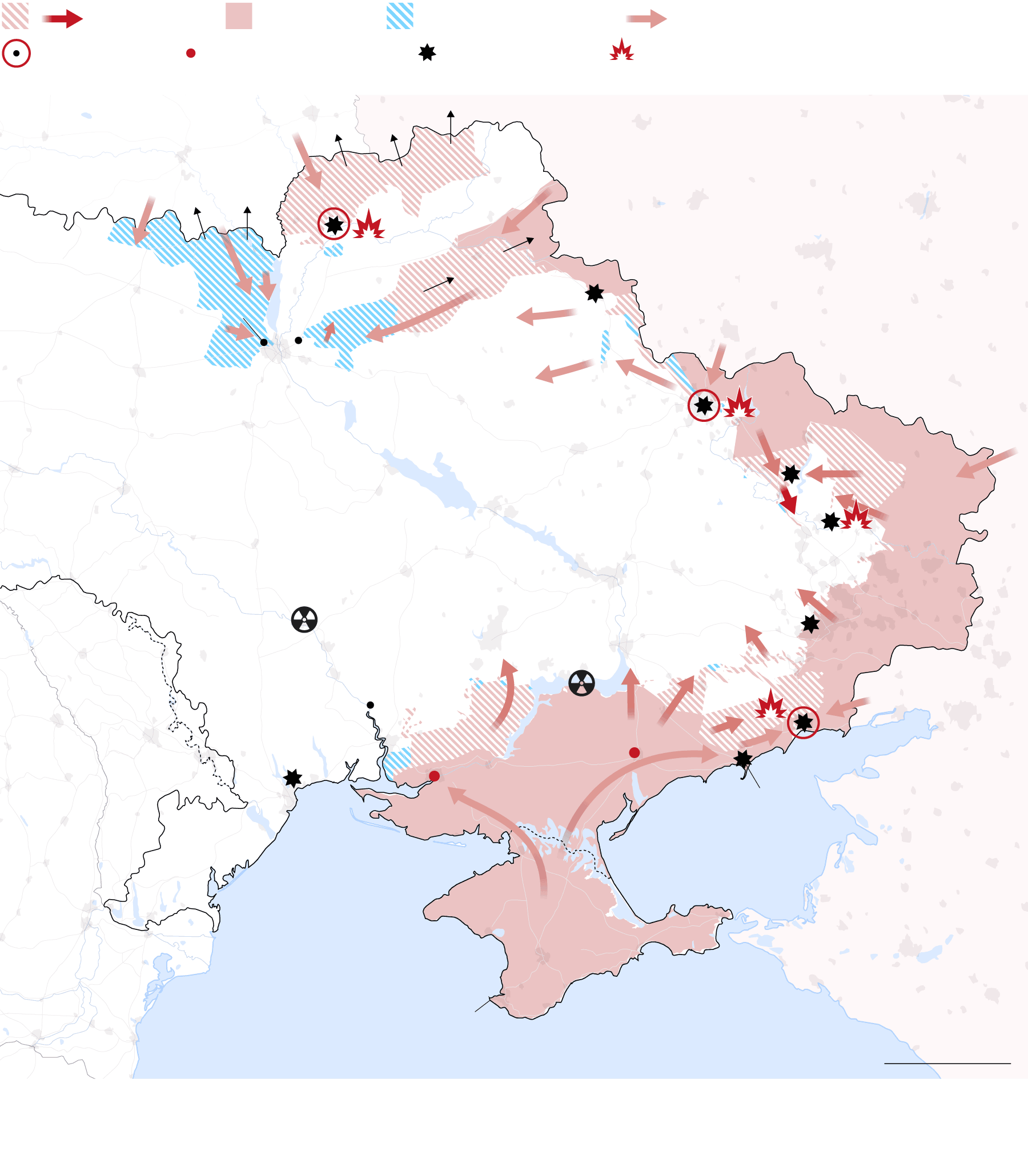 El ritmo del avance ruso en Ucrania lleva varios días ralentizándose, en comparación con las primeras jornadas de la ofensiva. Las tropas rusas no han ejecutado ataques simultáneos en los diferentes frentes de combate desde el pasado 4 de marzo, según el Instituto de Estudios para la Guerra (ISW). Los mayores avances rusos en el último día se dieron en la zona sur del país, donde desde la noche del lunes las tropas del Kremlin iniciaron diversas ofensivas desde la controlada Jersón, en dirección a Zaporiyia.