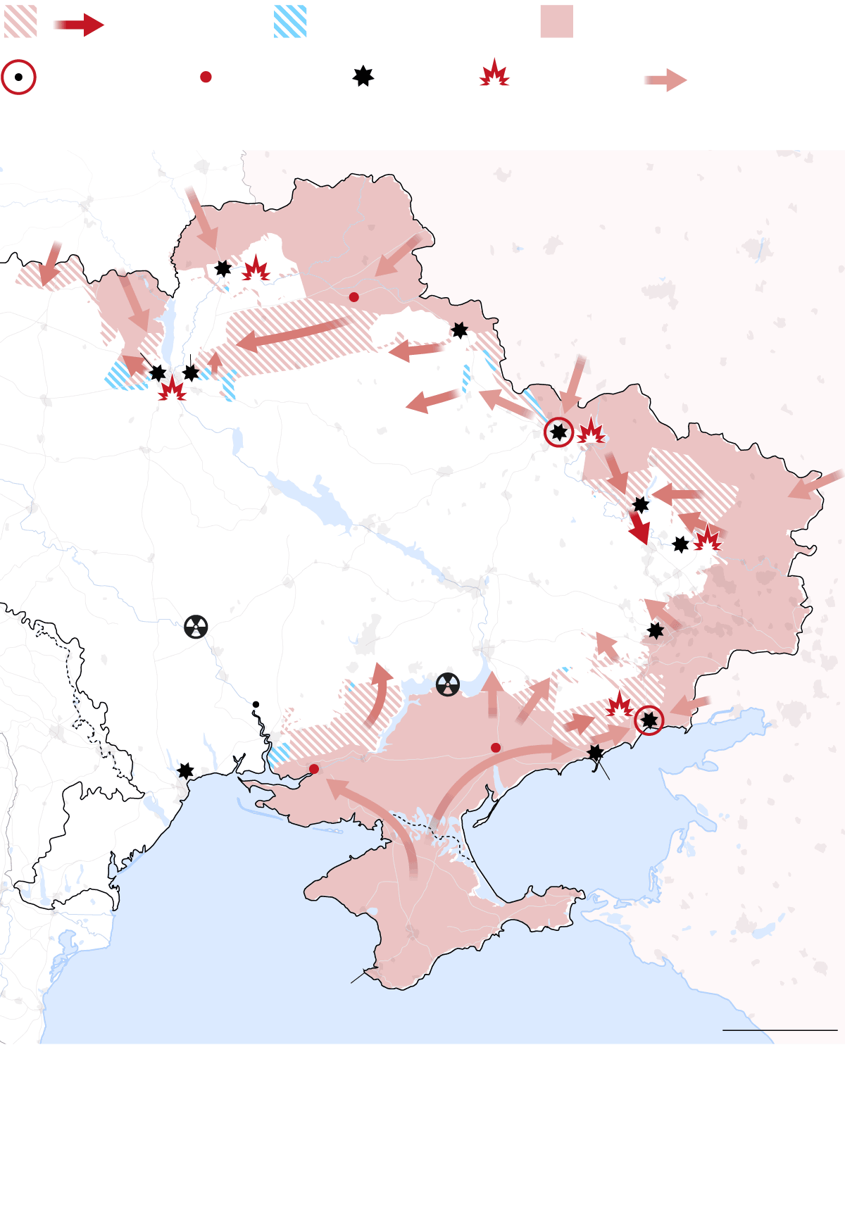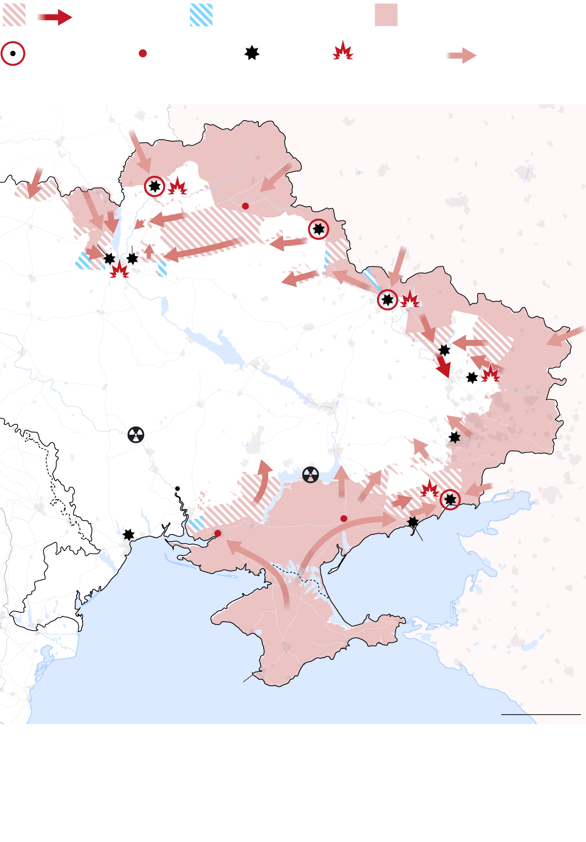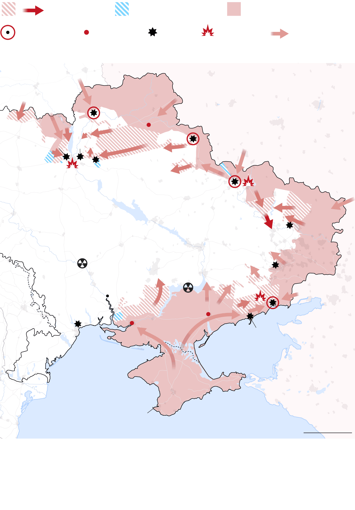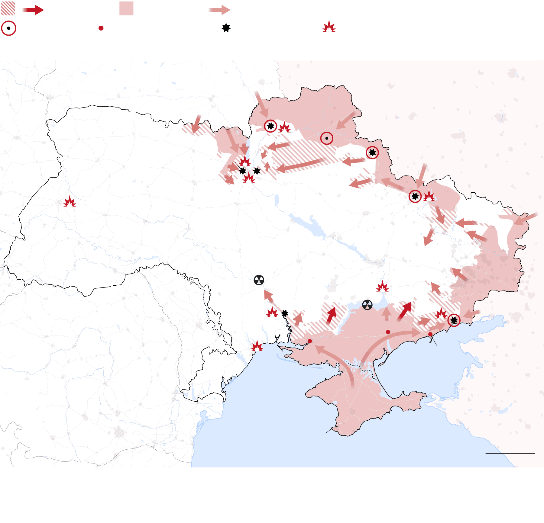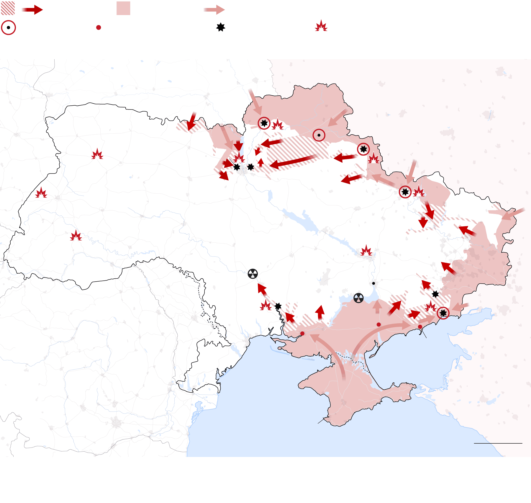 El ritmo del avance ruso en Ucrania lleva varios días ralentizándose, en comparación con las primeras jornadas de la ofensiva. Las tropas rusas no han ejecutado ataques simultáneos en los diferentes frentes de combate desde el pasado 4 de marzo, según el Instituto de Estudios para la Guerra (ISW). Los mayores avances rusos en el último día se dieron en la zona sur del país, donde desde la noche del lunes las tropas del Kremlin iniciaron diversas ofensivas desde la controlada Jersón, en dirección a Zaporiyia.