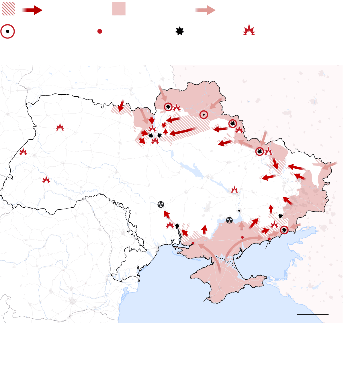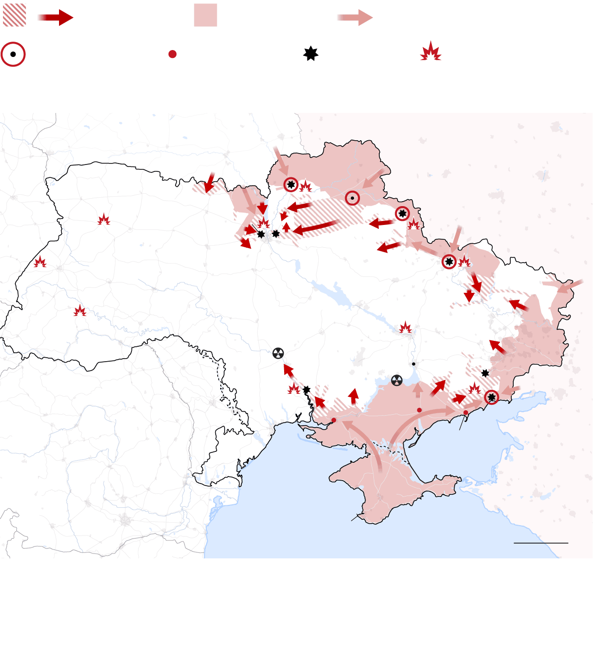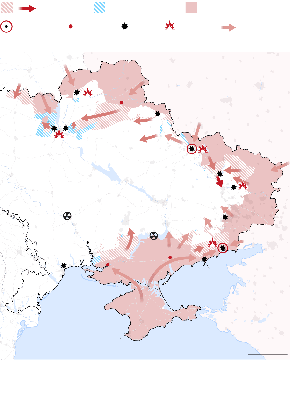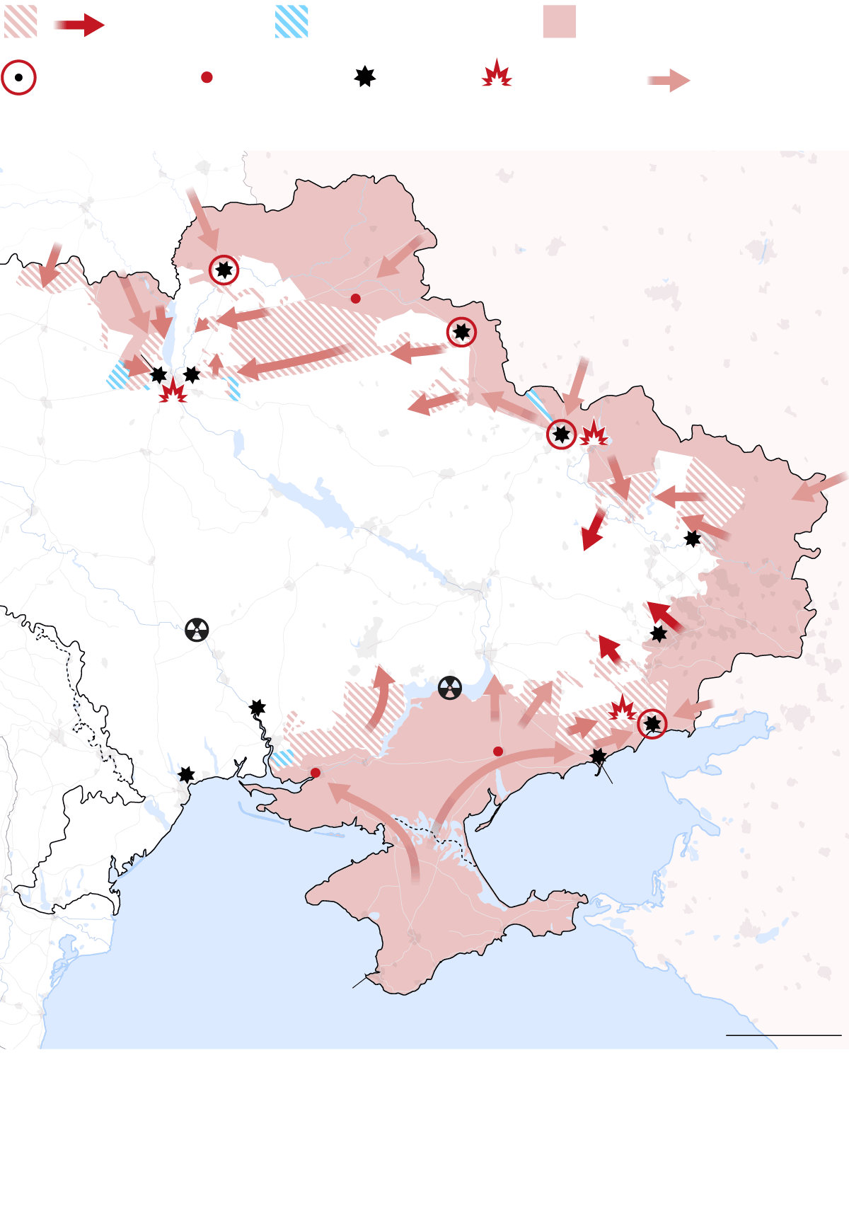 El ritmo del avance ruso en Ucrania lleva varios días ralentizándose, en comparación con las primeras jornadas de la ofensiva. Las tropas rusas no han ejecutado ataques simultáneos en los diferentes frentes de combate desde el pasado 4 de marzo, según el Instituto de Estudios para la Guerra (ISW). Los mayores avances rusos en el último día se dieron en la zona sur del país, donde desde la noche del lunes las tropas del Kremlin iniciaron diversas ofensivas desde la controlada Jersón, en dirección a Zaporiyia.