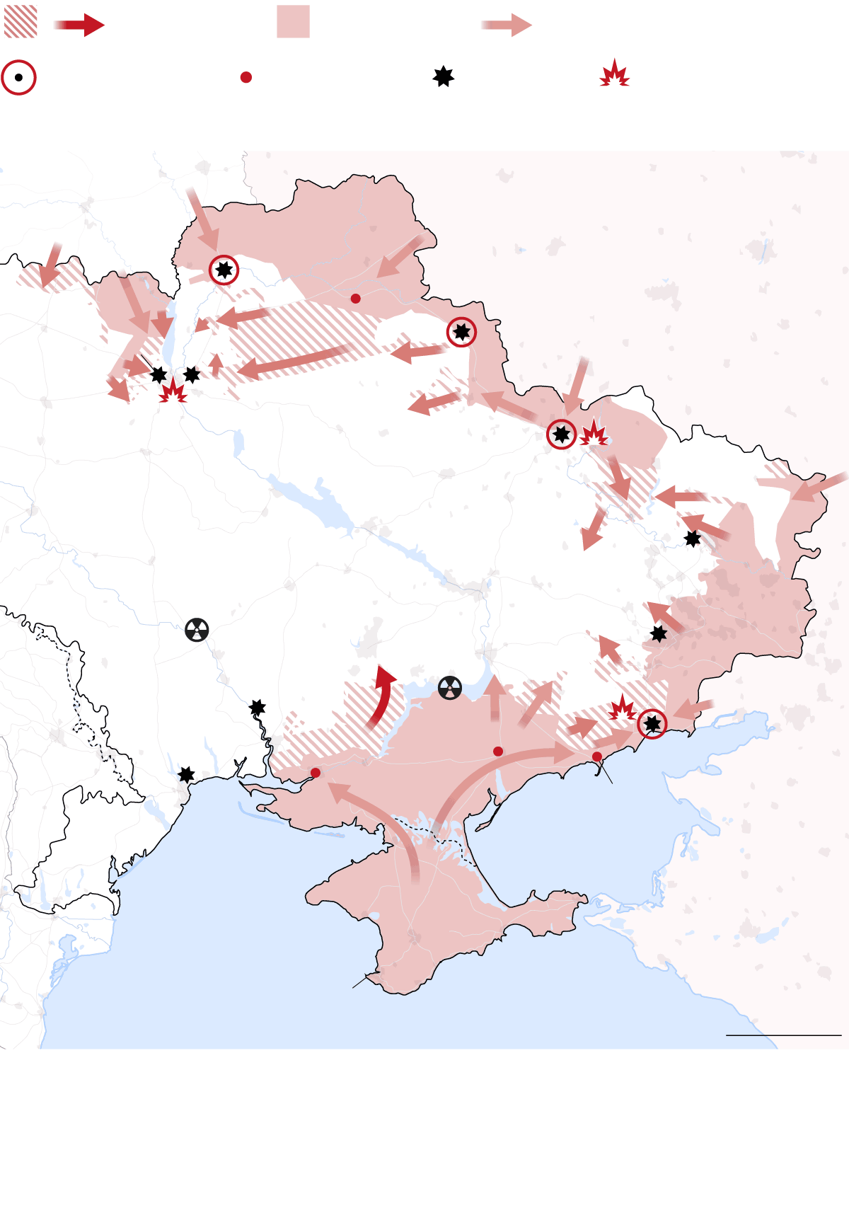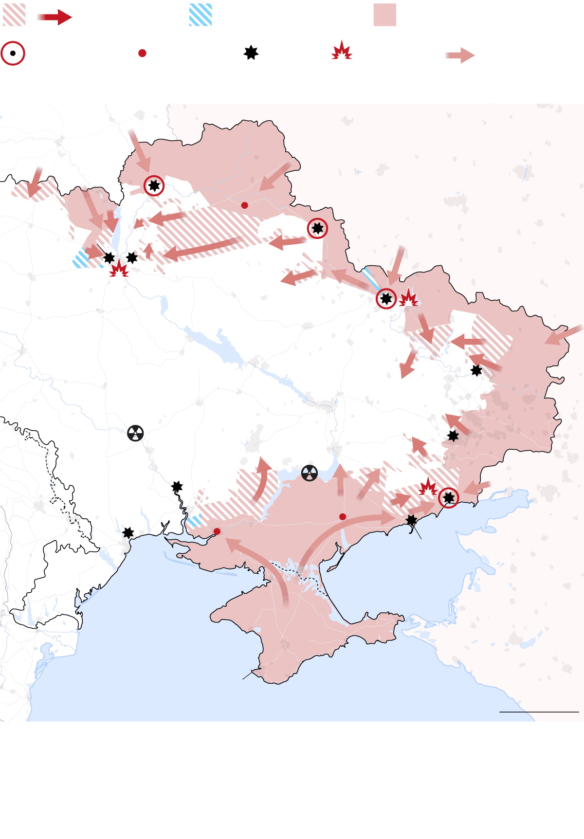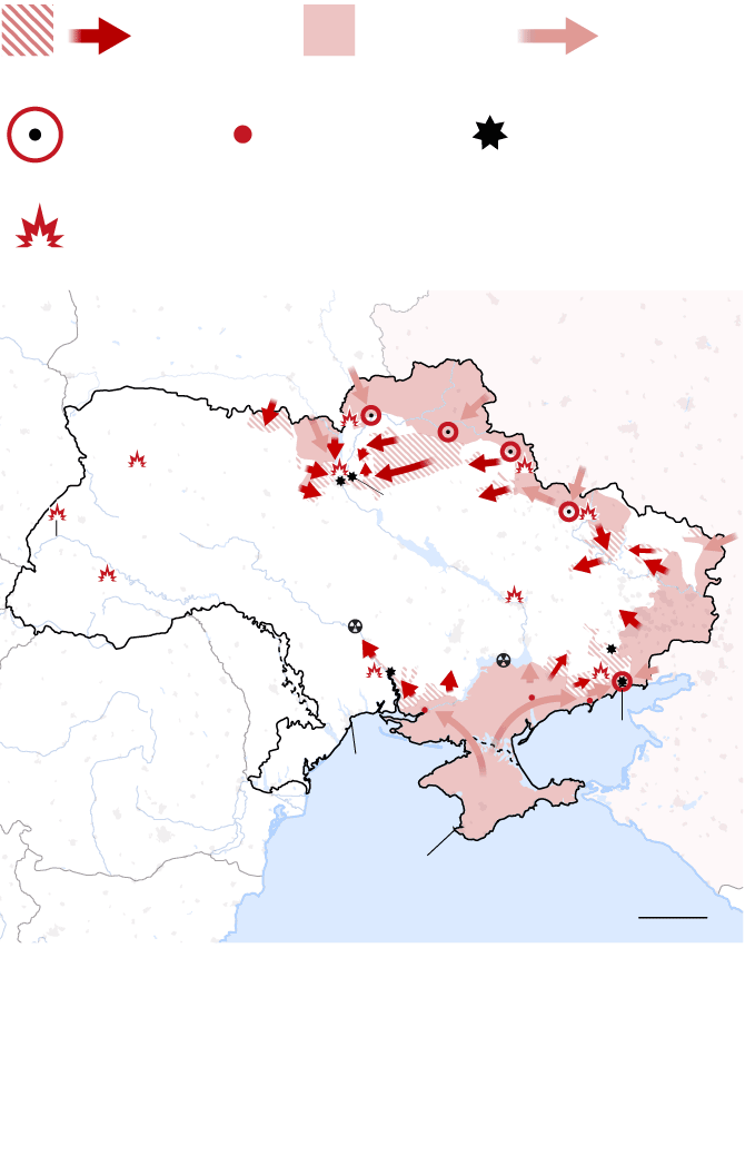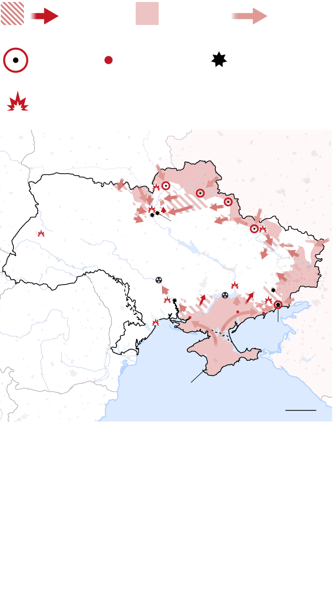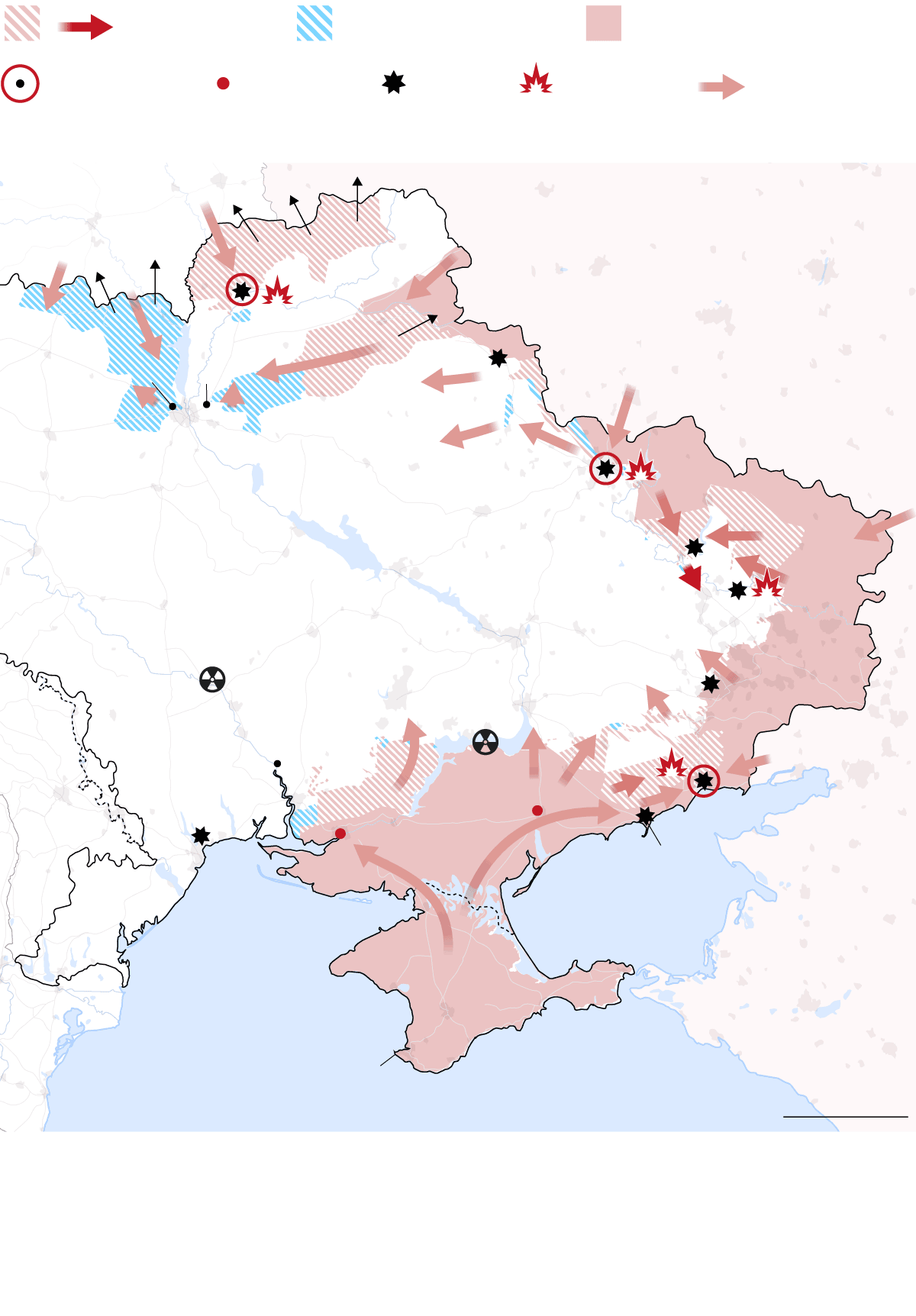 Nota: ¿Qué es control? Mantener influencia física sobre un área para evitar su uso por el enemigo. Puede lograrse ocupándola o dominándola con armas. No implica gobernanza ni legitimidad. Fuentes: Institute for the Study of War y American Enterprise Institute’s Critical Threats Project (para avances y zonas controladas); Inteligencia del Reino Unido (ciudades cercadas); EL PAÍS y otras fuentes (combates y bombardeos).