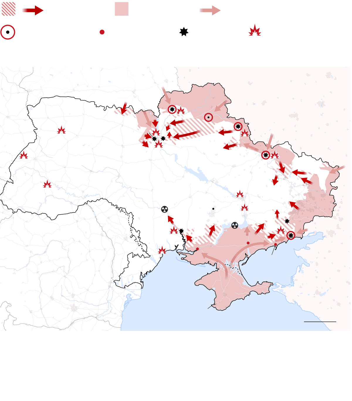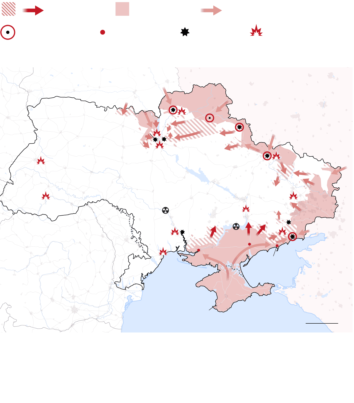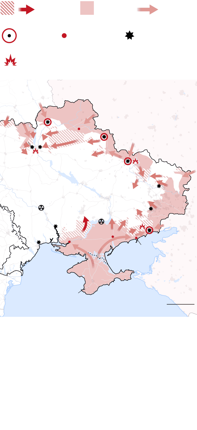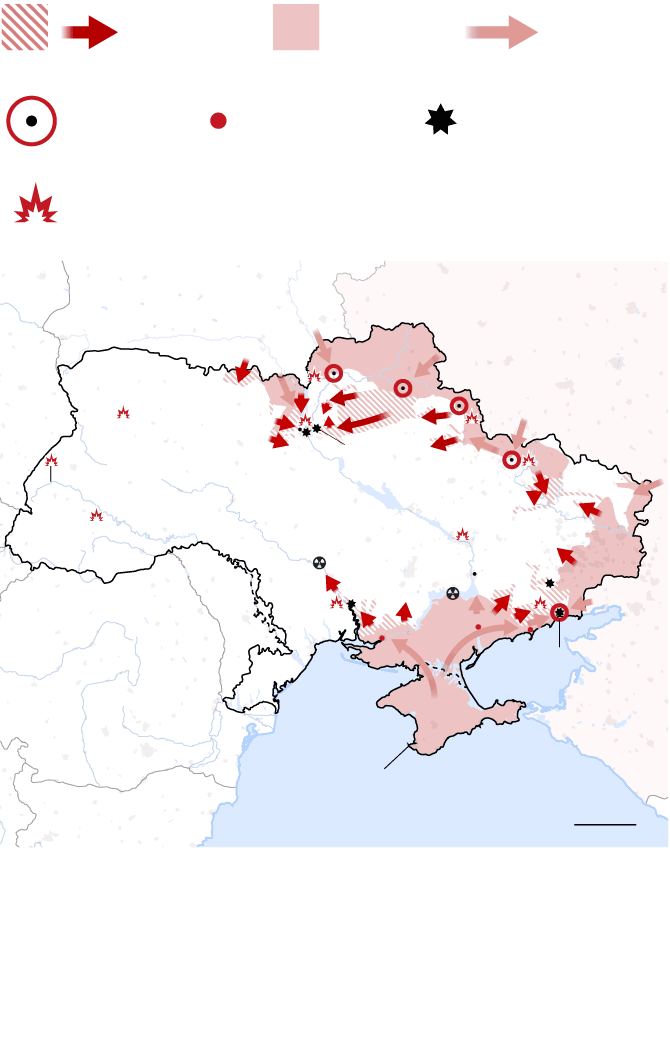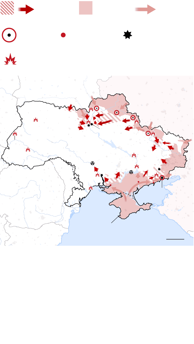 Nota: ¿Qué es control? Mantener influencia física sobre un área para evitar su uso por el enemigo. Puede lograrse ocupándola o dominándola con armas. No implica gobernanza ni legitimidad. Fuentes: Institute for the Study of War y American Enterprise Institute’s Critical Threats Project (para avances y zonas controladas); Inteligencia del Reino Unido (ciudades cercadas); EL PAÍS y otras fuentes (combates y bombardeos).