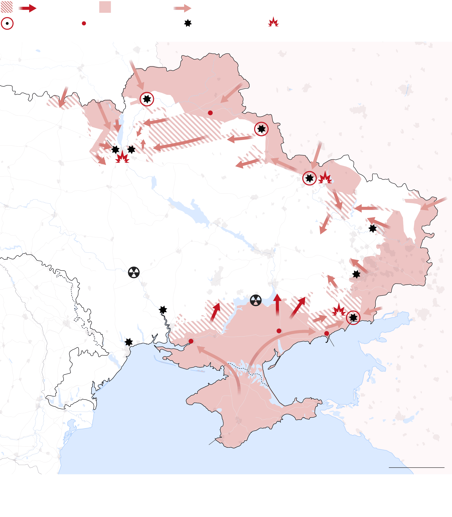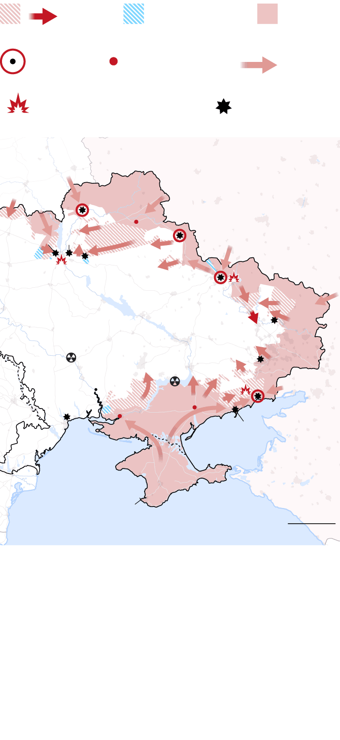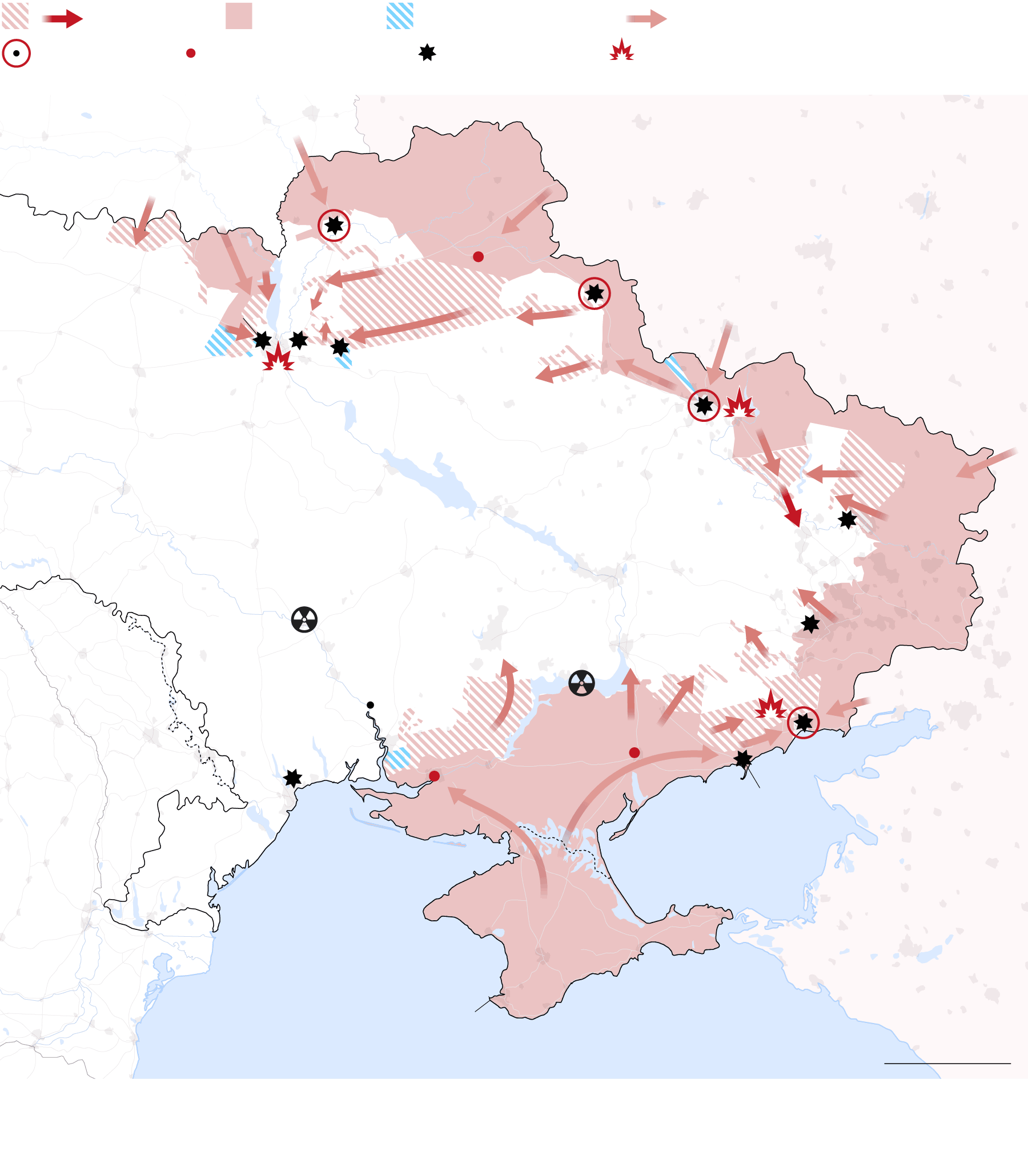 En el sur, el Ministerio de Defensa ruso aseguró el martes que se había hecho con el control de la región de Jersón, aunque el ISW limita el avance a ciertas áreas al noreste de esta población. Este movimiento podría dirigirse a cercar Zaporiyia, algo que parece improbable, al menos hasta que este frente pueda recibir refuerzos de las tropas rusas que ahora mismo se esfuerzan en la capitulación de Mariupol, al este del país.