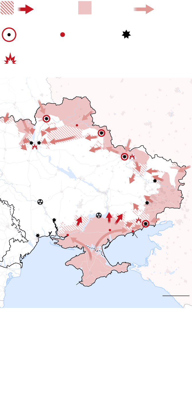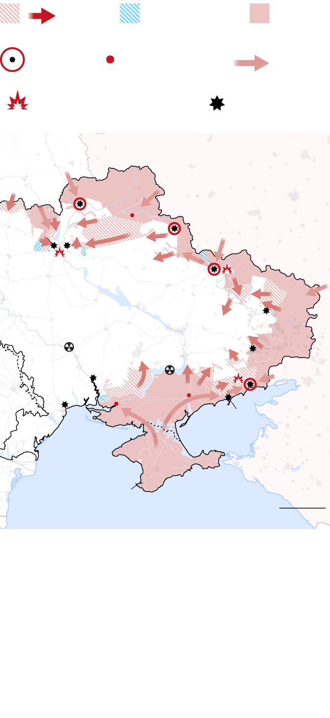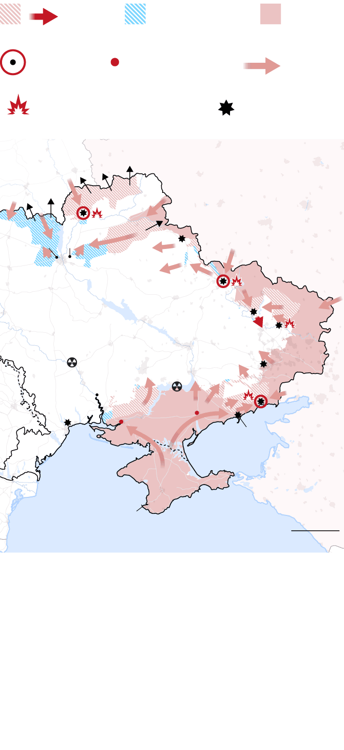 En el sur, el Ministerio de Defensa ruso aseguró el martes que se había hecho con el control de la región de Jersón, aunque el ISW limita el avance a ciertas áreas al noreste de esta población. Este movimiento podría dirigirse a cercar Zaporiyia, algo que parece improbable, al menos hasta que este frente pueda recibir refuerzos de las tropas rusas que ahora mismo se esfuerzan en la capitulación de Mariupol, al este del país.