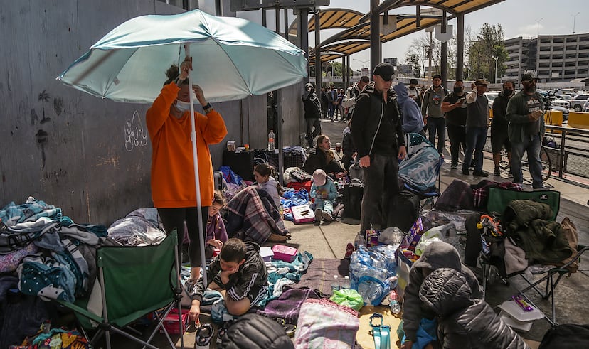 Debajo de un puente peatonal, un policía municipal de Tijuana juega con su teléfono. Desde el interior de un coche vigila una plaza acordonada, desierta. La garita El Chaparral, uno de los pasos peatonales de México a Estados Unidos, albergaba un campamento de casi 400 migrantes centroamericanos que pedían ingresar a California. Fueron desalojados del lugar el 6 de marzo. Hoy viven en diversos albergues. La zona se prepara ahora para la crisis que viene. El uniformado apuntaba el miércoles al oeste, a la aduana de San Ysidro, a poco más de dos kilómetros de distancia. “Allá están llegando los rusos”, decía con impaciencia por volver al móvil. Una de las fronteras con más movimiento de América aguarda las olas que ha provocado del otro lado del globo la guerra en Europa, un conflicto que ha dejado hasta el momento a tres millones de ucranios desplazados.