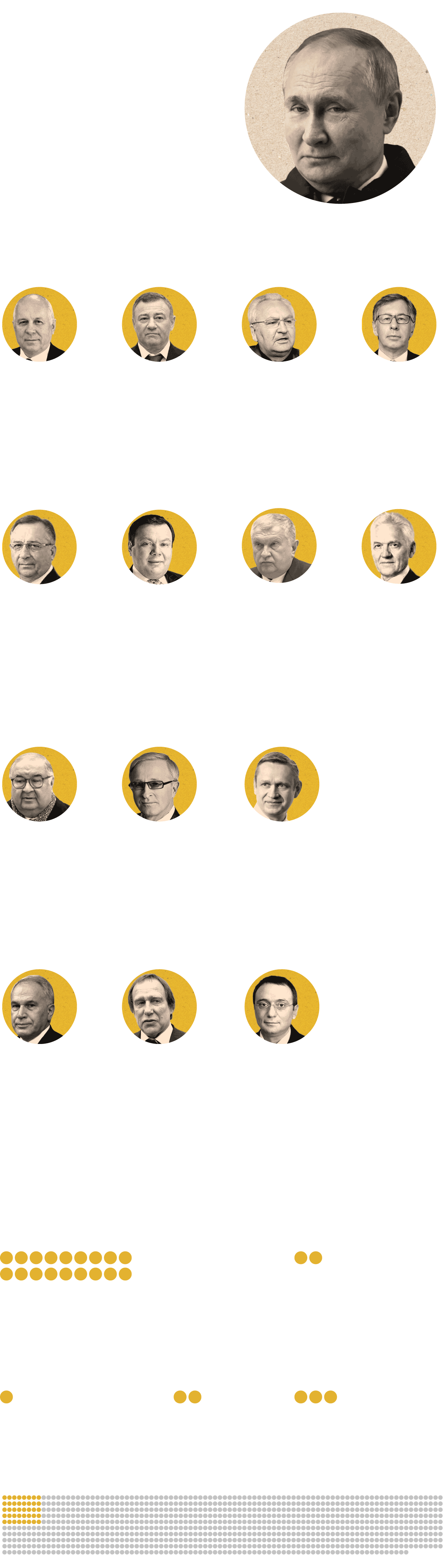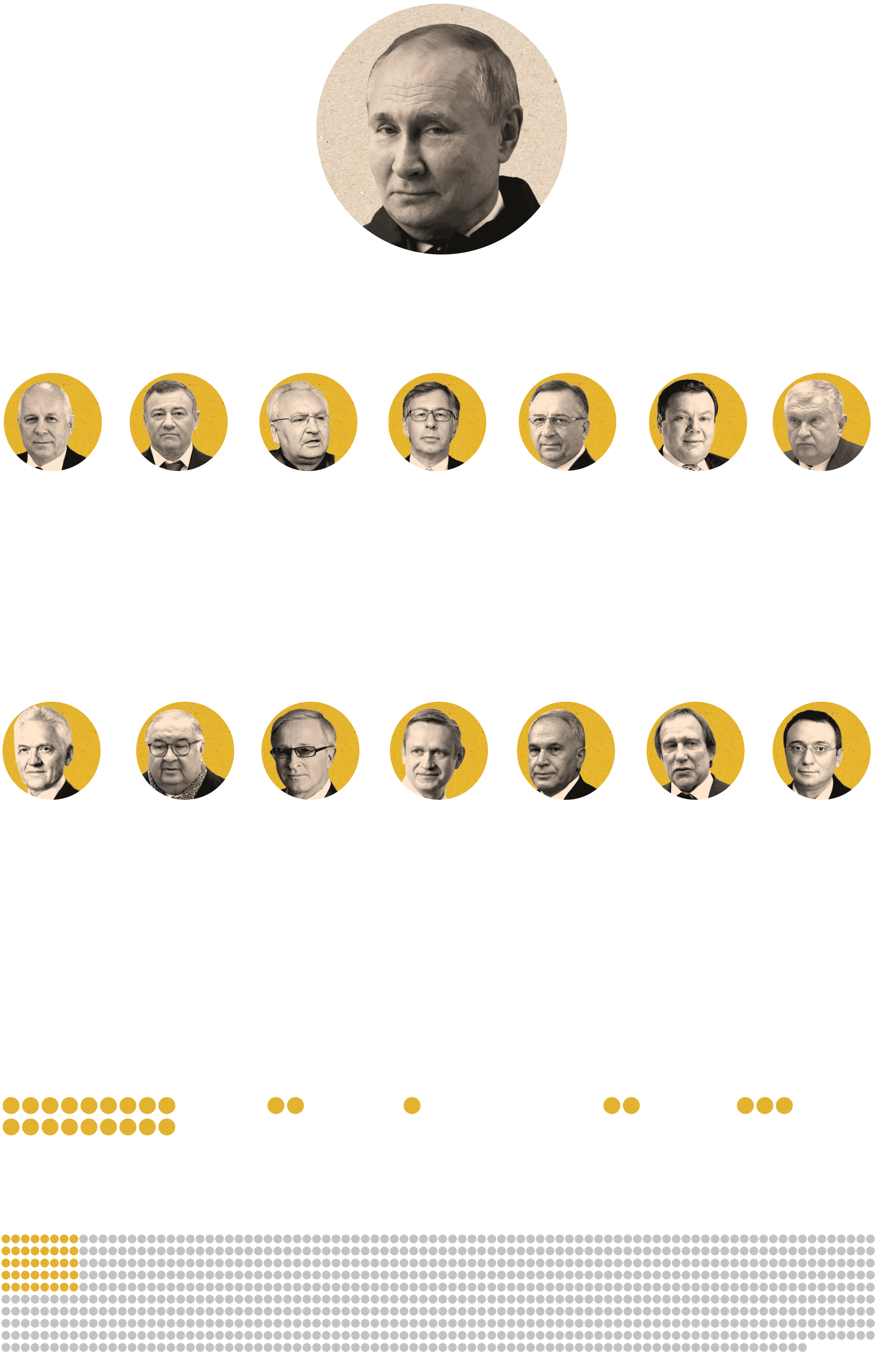 De entre los 40 nombres, hay 14 personas que forman parte del círculo de confianza más estrecho del presidente de Rusia, Vladímir Putin.