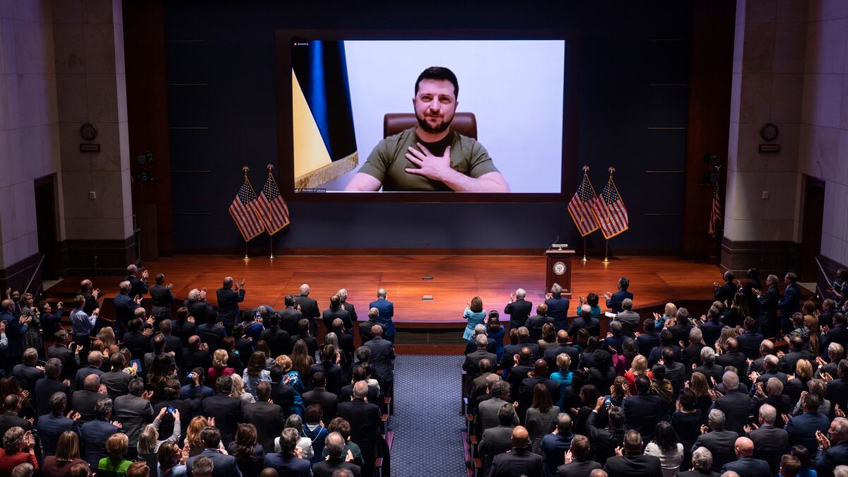 Desde que estalló la guerra, el presidente ucranio relata a diario en Twitter sus múltiples conversaciones con otros mandatarios y ha intervenido por videoconferencia en el Parlamento Europeo, el de Canadá, ante el Congreso de EE UU, y ante el Bundestag (Parlamento) alemán. Sin leer un papel, mirando de frente a la cámara, es decir a los parlamentarios, los lleva hasta la guerra. Dijo ante los estadounidenses: “Solo recuérdenlo. Recuerden el 11-S, cuando personas inocentes fueron atacadas desde el aire. Nuestro país experimenta eso cada día, justo ahora”. Zelenski también reforzó su mensaje ante el Congreso de EE UU con un vídeo que comenzaba mostrando Ucrania antes de la guerra, con imágenes trasladables a cualquier capital en paz —una mujer paseando un día de sol, un padre jugando con su hijo en un parque...— y vertía, a continuación, dos minutos de muerte y destrucción: niños y ancianos ensangrentados, edificios derruidos, fosas comunes...
