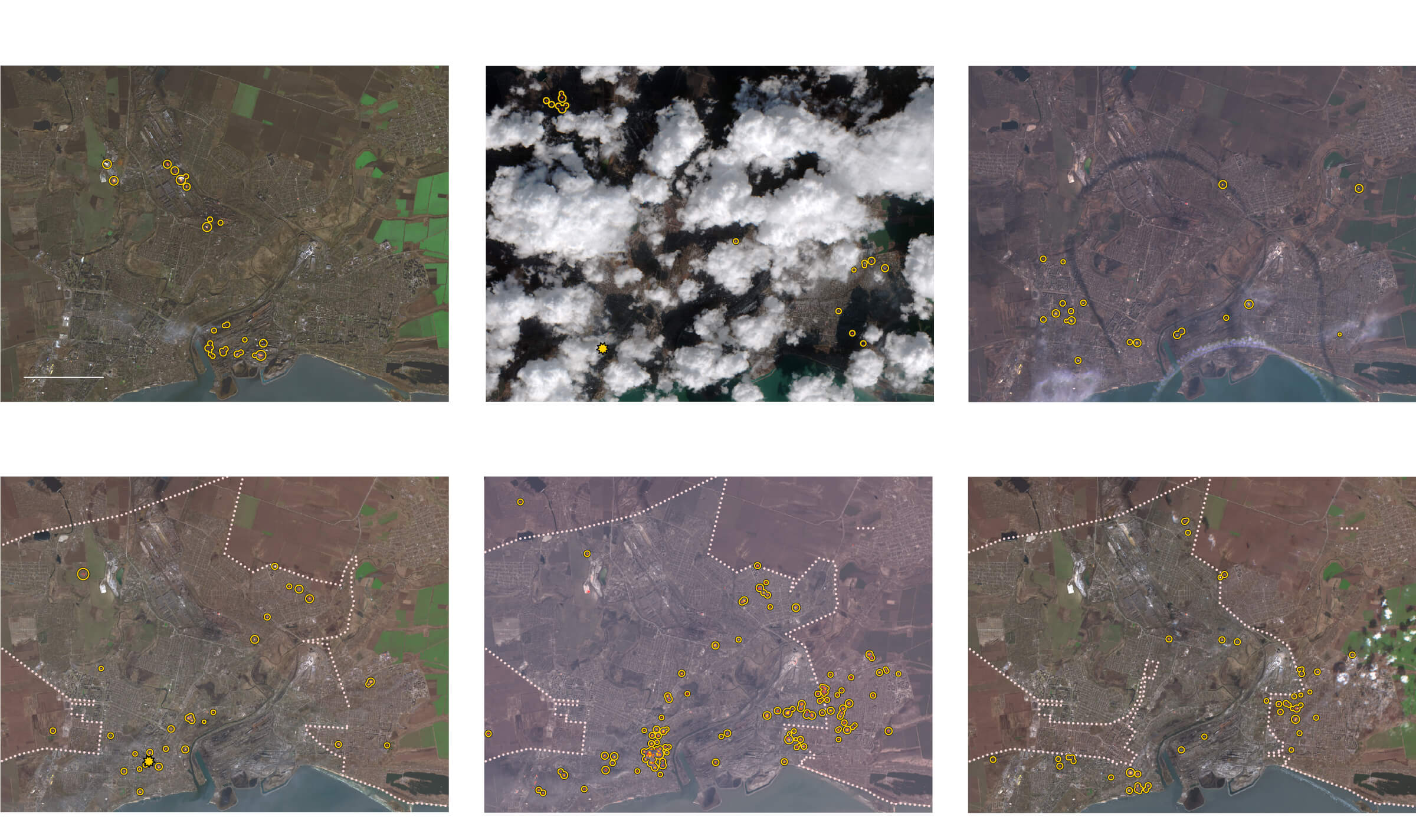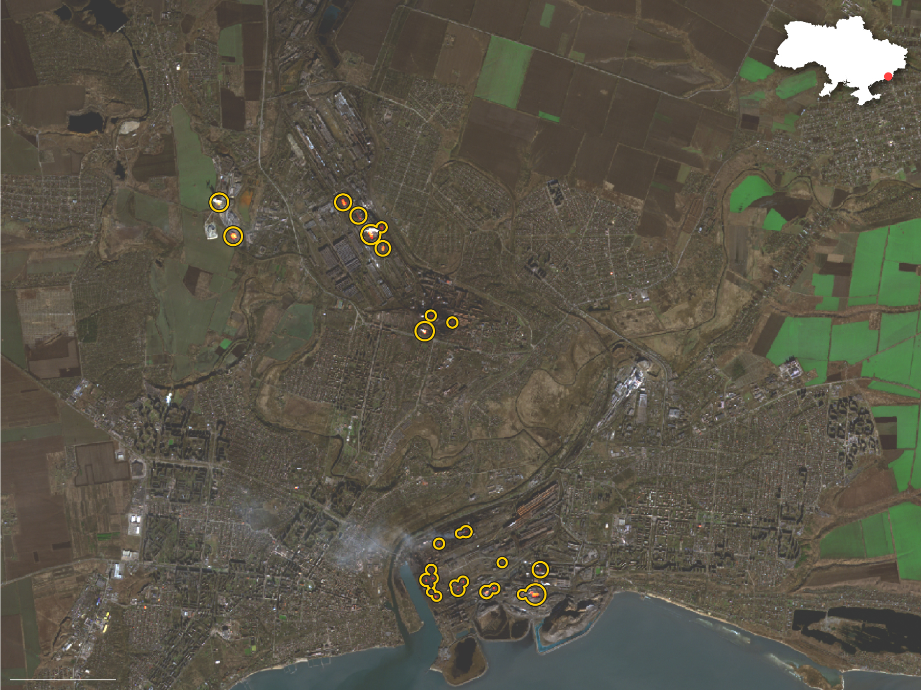 Un mes y medio antes de la invasión, los satélites Sentinel-2, de la Agencia Espacial Europea, y Landsat, de la NASA, mostraban Mariupol como lo que era en tiempos de paz: una ciudad portuaria con una industria metalúrgica que le valía el sobrenombre de capital del acero de Ucrania. Los sensores de estos aparatos permiten captar focos de calor en la ciudad que normalmente se asocian a incendios o industrias cuya actividad emite calor visible, por ejemplo, en chimeneas.