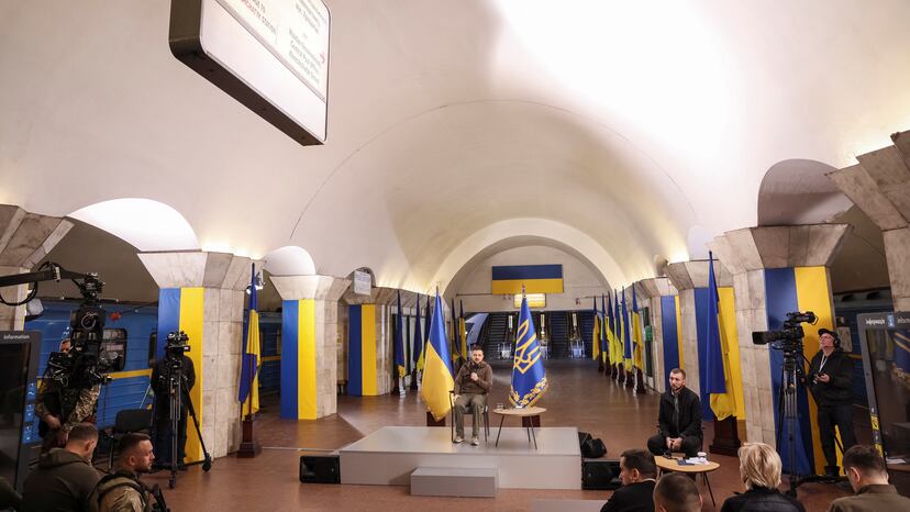 Vestido de verde militar, sentado sobre una tarima en los andenes de una céntrica estación de la capital, Zelenski respondió sobre el miedo a reunirse con el presidente ruso debido a que algunos miembros de su grupo informal de negociación denunciaron haber sufrido síntomas parecidos a los de un envenenamiento tras algunas reuniones con su contraparte. Zelenski calificó esos episodios de “intentos de asesinato” y dijo que su equipo de seguridad y su familia estaban preocupados, pero que él no podía estarlo. “No tengo miedo de reunirme con Putin o por los intentos de asesinato”, afirmó. “Yo no tengo derecho a tener miedo porque nuestro pueblo ha demostrado que no le tiene miedo a nada. Temen por sus hijos, eso es cierto, pero la gente detenía los tanques con sus propias manos”.