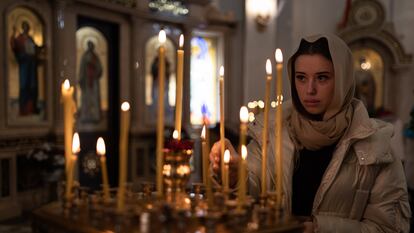 Como Larissa, de la provincia oriental de Donetsk, extremadamente castigada en esta segunda fase de la guerra, que huyó de su casa con su hija pequeña la semana pasada. La mujer, con el cabello cubierto, reza frente a una pequeña iglesia del patriarcado de Ucrania en el centro de la ciudad. Una de las tres construidas recientemente, tras la escisión del patriarcado de Moscú, que el Gobierno ucranio considera el brazo religioso del Kremlin. “No sé dónde ir, querría volver a mi casa, pero mis vecinos dicen que la situación allí es horrible”, se lamenta.
