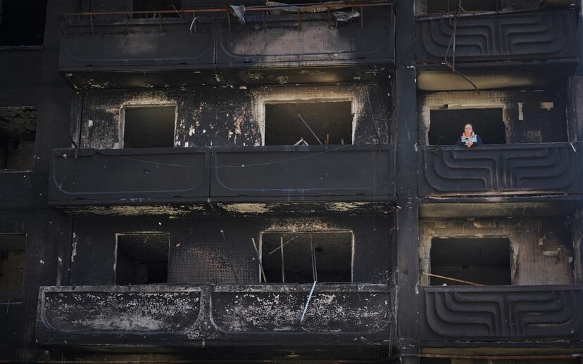 En uno de ellos vivía Natalia, de 45 años, que regresó el pasado martes del oeste de Ucrania, donde se refugió. Escapó cuando los choques acababan de empezar y dejó solo las ventanas rotas de su apartamento, en un tercero. Al volver, ha comprobado que las llamas lo han devorado todo. En medio de la desolación, una cazuela roja se mantiene sobre uno de los fogones. El eco de los cristales al pisar el suelo es lo único que se escucha en un edificio desierto e inhabitable.