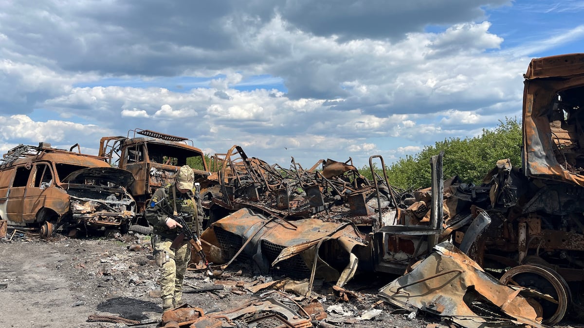 Los feroces combates del cinturón de Járkov duraron cuatro días. Un comandante apodado Sacha afirma que, confiados y con información de espionaje fallida, los soldados de Putin trataban de avanzar desde varios puntos en dirección a la ciudad y se encontraron bajo el ataque coordinado ucranio, alimentado por las armas suministradas por los aliados occidentales. La huella de esa poderosa contraofensiva permanece en torno a Kutuzivka en forma de columna de blindados calcinados, tanques, camiones y coches fulminados que yacen como un amasijo de hierros a un costado de la carretera. En las verdes cunetas aún esperan al equipo de desminado para retirar algún cadáver ruso. En los almacenes refrigerados de la ciudad de Járkov hay muchos más. El Kremlin se niega a reclamarlos. El ruso es un Ejército que deja atrás a sus muertos.