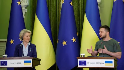 Salvo imprevisto de última hora, Ucrania será reconocida en la cumbre de este jueves y viernes como candidata al ingreso en la UE. “El Consejo Europeo ha decidido otorgar el estatus de candidato a Ucrania y a la República de Moldavia”, proclama el borrador de las conclusiones al que ha tenido acceso EL PAÍS. El anhelado reconocimiento pretende ser una señal de confianza y esperanza para el pueblo ucranio y le garantiza que, cuando concluya la agresión rusa, iniciará la senda que conduce a la incorporación al club comunitario. Pero el camino no está exento de dificultades, empezando por la guerra lanzada por Vladímir Putin. Exige, además, por parte de Zelenski un ingente esfuerzo adicional para introducir drásticas reformas en un país golpeado por Moscú de manera incesante desde 2014 e invadido parcialmente por tropas rusas desde febrero.