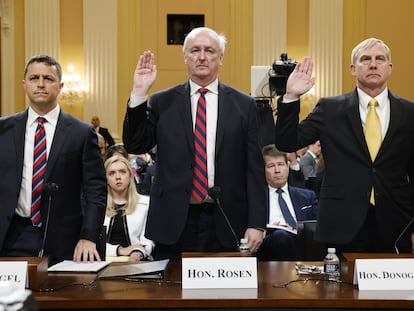 Las confesiones fueron “francas” y “en la línea de lo contado por otros testigos”, según reveló ese día la congresista Zoe Lofgren (California) a CNN. Así que la declaración estará a buen seguro entre los platos fuertes de las dos sesiones que la comisión ha anunciado para la próxima semana. La primera, el martes por la mañana, se centrará en los vínculos entre las teorías falsas de robo electoral de Trump y grupos de extrema derecha como Proud Boys (Muchachos orgullosos) y Oath Keepers (Guardianes del juramento). Sus miembros se citaron en Washington aquel día e, instigados por Trump durante un mitin, llevaron las riendas de un asalto que la comisión quiere probar que fue planeado. Perseguían impedir la certificación del triunfo de Joe Biden, un trámite democrático nunca antes interrumpido.
