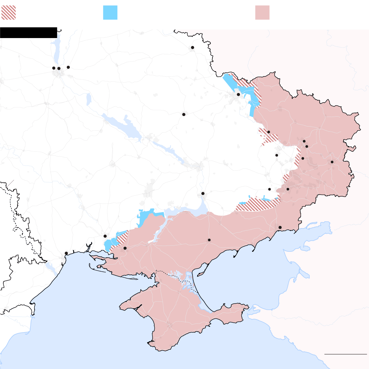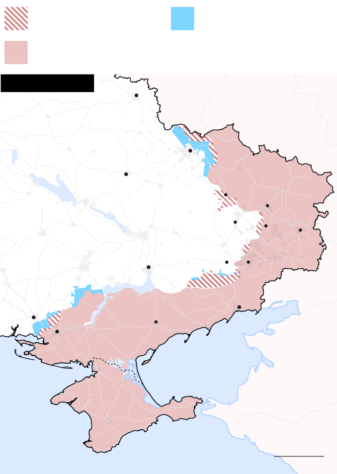 Pero la ofensiva fue pronto marcada por una gran dispersión de fuerzas y notables fallos de coordinación y logística. Esa fase terminó con una rotunda derrota rusa en el frente norte —incluida la fundamental retirada en el eje ofensivo de Kiev— y un mejor desempeño de las fuerzas del Kremlin en los frentes sur y este con el establecimiento de un corredor entre Crimea y Donbás.