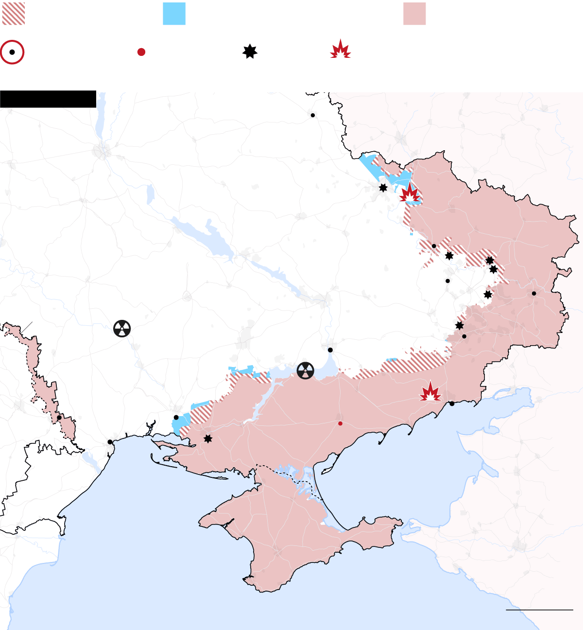 La grabación muestra una explosión en la noche, una gran bola de fuego que sube hacia el cielo. Las fuerzas ucranias sostienen que es el resultado de su ataque a principios de esta semana contra un depósito ruso de armas en territorio ocupado en la sureña localidad de Nova Kajovka, cerca de la ciudad de Jersón; los rusos afirman que resultaron golpeadas instalaciones civiles. El episodio no ha podido ser verificado de forma independiente, pero se ha convertido en un emblema del nuevo giro de la guerra de Ucrania: el potencial de sistemas de artillería con gran alcance suministrados recientemente a Kiev por sus aliados occidentales y que posibilitan golpear con precisión la retaguardia rusa.