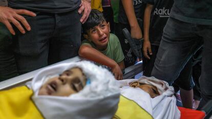 “Israel nunca reconoce que ha causado víctimas inocentes”. El asistente social Fayed Wisam, de 43 años, tío de los cuatro niños del clan Nayam que cayeron fulminados en el cementerio de Faluya, meneaba la cabeza bajo la sombra del azza familiar, el entoldado que acoge un velatorio al aire libre. Sus sobrinos acababan de ser inhumados al mediodía del lunes. “Este es nuestro destino”, asumía entre lágrimas con el fatalismo que reina en los 2,3 millones de habitantes de Gaza tras 15 años de bloqueo israelí (y en parte egipcio) jalonados por cuatro devastadoras guerras e incontables estallidos, como el recién concluido. “Las heridas de los chicos eran de pequeña metralla, como la que propagan las explosiones causadas por drones israelíes”, aseguraba, en un criterio compartido por medios de información palestinos.