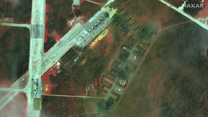 La guerra es terreno bien abonado a la especulación, pero las imágenes hablan por sí mismas. El jueves, la empresa estadounidense Maxar Technologies, con sede en Colorado, facilitó muestras de la destrucción en la base aérea rusa de Saki, junto a la localidad de Novofedorivka, en la costa occidental de Crimea. Las fotografías fueron captadas 24 horas antes por sus satélites.