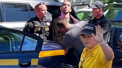 El detenido por el apuñalamiento del escritor ha sido acusado de intento de asesinato y está detenido sin fianza. A Hadi Matar, un hombre de 24 años de Fairview (Nueva Jersey) que se ha declarado inocente, se le imputan cargos de intento de asesinato y asalto. Nacido en EE UU, Matar es de origen libanés. Su familia procede de una zona del sur del país mediterráneo, donde tiene su bastión el partido-milicia chií Hezbolá, abiertamente proiraní. En Beirut, un portavoz de Hezbolá aseguró el sábado que el grupo no tiene ninguna información sobre el ataque. Una revisión policial de las redes sociales de Matar, citada por el canal estadounidense NBCR, apunta a que el joven simpatiza con el cuerpo de élite de la Guardia Revolucionaria Iraní.