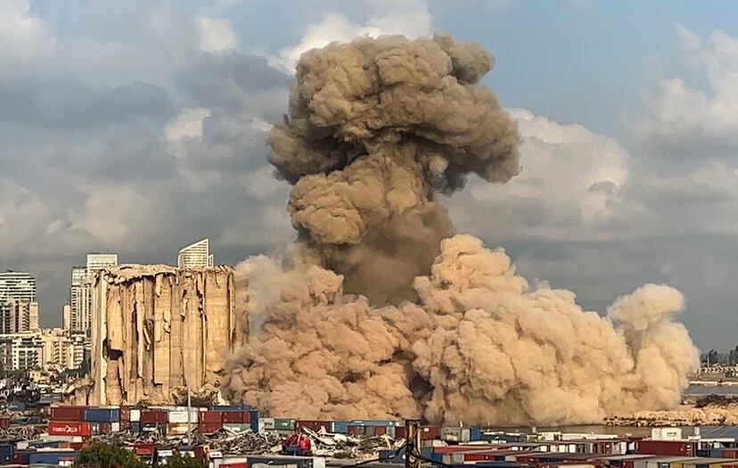 Hay una bruma oscura en Mar Mikhael, el barrio más próximo a la zona cero de la explosión que asoló la capital libanesa hace dos años. Esa neblina, que se percibe con claridad en la parte más cercana al mar, provenía del grano ardiendo almacenado en los silos del puerto. La combustión ha provocado colapsos parciales de la estructura en las últimas semanas, hasta que este martes la cara norte de los silos se ha derrumbado por completo. Hoy el humo negro es más denso e invade todo Mar Mikhael en un terrible recordatorio de la catástrofe.