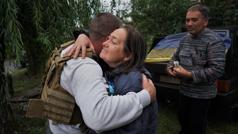 En medio del temor que embarga a la población ante una posible vuelta de los rusos, Taras, de 31 años, regresa por sorpresa a casa tras más de 200 días ausente. Lo hace al grito de “¡hände hoch!” ataviado con chaleco antibalas y casco. Se trata de la expresión alemana “¡manos arriba!”, que en Ucrania se mantiene como broma herencia de la II Guerra Mundial. Le pareció la mejor idea después de medio año sin ver a su familia. Eligió esa entrada en la vivienda en plan peliculero pese a que todos siguen estremecidos. La abuela, la madre, el padre, el hermano, los vecinos… todos, cual anuncio de turrón, se funden en unos segundos de abrazos, regocijo y lágrimas de jubilosa bienvenida en torno al hijo pródigo, al que la guerra ha mantenido alejado desde que comenzó la invasión el 24 de febrero.