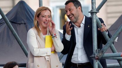 Giorgia Meloni y Matteo Salvini no tienen una gran relación. Ambos proceden de tradiciones políticas y geográficas diametralmente opuestas y el trato personal nunca ha servido de pegamento. Pero ambos políticos, fuerzas principales de la coalición liderada por la ultraderecha que ha ganado las elecciones italianas, han aprendido a convivir y se respetan. La ley electoral, que premia las coaliciones configuradas antes de los comicios, engrasó una relación de naturaleza algo heterodoxa. El problema es que el pésimo resultado de Salvini (8,9% de los votos frente al 26% de Meloni) puede provocar ahora una situación de tensión que entorpezca el nacimiento del nuevo Ejecutivo. El miércoles, ambos líderes se reunieron durante más de una hora para limar las asperezas que ya han comenzado a surgir a cuenta de la futura lista de ministros.