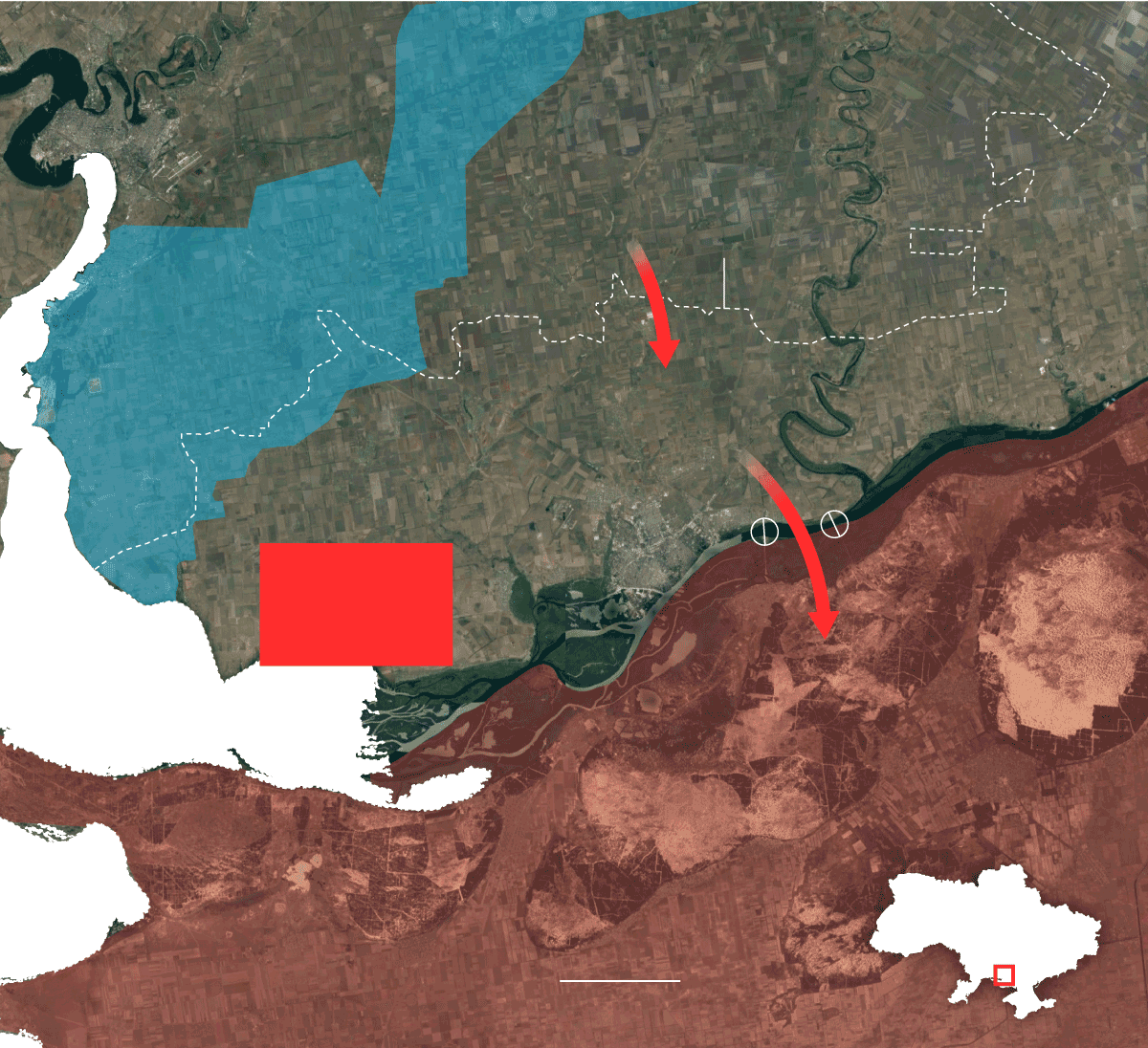 Las tropas de Kiev llevan meses atacando centros de abastecimiento y de municiones rusos en la margen izquierda del río Dniéper, donde mejor posicionados estaban los soldados de Moscú. La combinación de estos golpes, apunta el ISW, con ataques dirigidos a los puentes que permitían a las tropas ocupantes superar el río Dniéper, ha terminado por hacer inviable que los ocupantes enviasen víveres y armas a la margen derecha, esa que ahora abandonan.