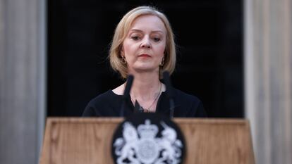 La primera ministra británica, Liz Truss, se ha visto forzada a dimitir este jueves apenas un mes y medio después de tomar posesión del cargo. “Reconozco, dada la situación, que no puedo cumplir el mandato para el que fui elegida por el Partido Conservador”, ha dicho Truss en una breve declaración en Downing Street. El descomunal revuelo creado por la fallida rebaja de impuestos ha terminado con su brevísimo mandato después de que una mayoría de parlamentarios se rebelaran contra la líder tory. Graham Brady, el presidente del Comité 1922, el órgano que reúne a los backbenchers (literalmente, los diputados de las bancadas traseras, que son los que no ocupan puesto alguno en el Gobierno y han presionado para que la todavía primera ministra anunciara su dimisión esta tarde), ha anunciado que la disputa para ver quién se hace con el liderazgo del Partido Conservador y, por tanto, quien se convertirá en el futuro primer ministro del Reino Unido, terminará el próximo 28 de octubre. Habrá un máximo de tres candidatos, ya que los conservadores han cambiado el proceso de selección y cada aspirante deberá obtener 100 apoyos (en lugar de 20) entre los 357 diputados ‘tories’. El líder laborista, Keir Starmer, ha pedido que se celebren elecciones generales, ya que “el pueblo británico se merece algo mucho mejor que esta puerta giratoria del caos”.