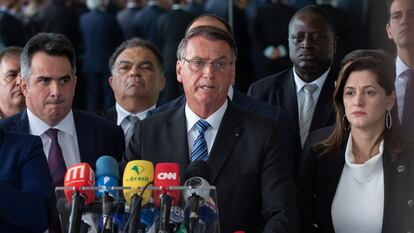 Dos minutos ha durado la intervención con la que el presidente de Brasil, Jair Messias Bolsonaro, ha roto su silencio 45 horas después de perder las elecciones el domingo. El ultraderechista no ha admitido explícitamente su derrota ni los resultados. Tampoco ha mencionado al ganador, Luiz Inácio Lula da Silva, pero sí ha afirmado: “Seguiré cumpliendo los mandatos de la Constitución”. En cuanto el mandatario ha abandonado el atril y salido de la sala, el ministro de la Casa Civil, Ciro Nogueira, ha tomado la palabra para decir que el jefe del Estado le había autorizado a emprender la transición de poderes.