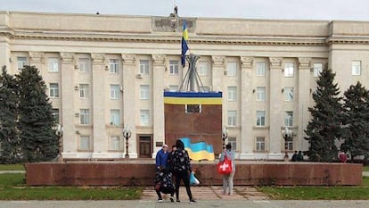 La bandera ucrania ondea ya en la sede de la Administración regional de Jersón, una ciudad cuya recuperación por parte de las fuerzas de Kiev marca un hito en la guerra. La retirada de las tropas rusas se ha producido en apenas día y medio después de que fuera anunciada por su alto mando. “A las cinco de la mañana, hora de Moscú, fue completado el trasvase de tropas rusas a la orilla izquierda del río Dniéper”, ha anunciado el Ministerio de Defensa ruso. La salida, anticipada por Moscú, representa un importante revés para la estrategia de Rusia, que pierde la única capital regional que había ocupado desde el inicio de la invasión, el pasado 24 de febrero. Jersón, el punto más occidental al que habían llegado las fuerzas del Kremlin, se convierte así en un símbolo del avance de la contraofensiva ucrania.