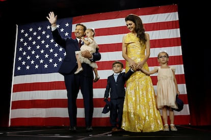 Hace cuatro años, cuando su marido optaba por primera vez a gobernar Florida, la aspirante a primera dama del Estado presentó otro anuncio en el que DeSantis instruía a sus hijos en el trumpismo: la construcción del muro con México como si fuera un colorista mecano; el movimiento MAGA (Make America Great Again), explicado como un cuento de hadas. O la escena en la que interpreta para el más pequeño de la casa, un bebé, uno de los gags característicos del reality show que presentaba Trump antes de ser presidente, El aprendiz. “Y entonces Trump dice: ‘¡Estás despedido!’. Me gusta esta parte”, bromea papá DeSantis. Pero la admiración por Trump parece haber descendido en los últimos tiempos. Desde entonces, enfrentado cada vez más al expresidente, DeSantis ha emprendido su propio camino hacia la cumbre. Solo cuatro años de diferencia y un abismo entre ellos.