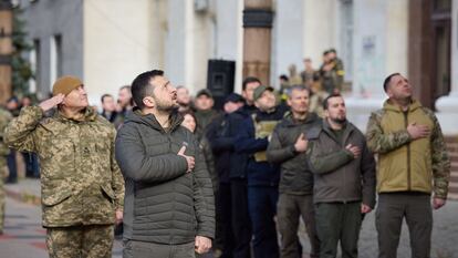 La última aparición de Zelenski fuera de la capital, antes de su visita a Jersón este lunes, fue en la localidad de Izium (región de Járkov), el 14 de septiembre. Lo hizo pocas horas antes de que se empezara a excavar en las más de 400 fosas dejadas por las fuerzas rusas en un pinar de esa ciudad, tremendamente castigada por los bombardeos y la ocupación. Algunos de los cuerpos presentaban signos de tortura, según las primeras apreciaciones hechas por los forenses.