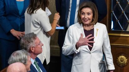 Pelosi lo ha sido todo entre los demócratas: responsable del comité nacional, el puente de mando del partido; fontanera, baronesa y cajera, una máquina de conseguir donaciones en un país en el que suele ganar el candidato con más apoyo económico. Cuando recuperó el mazo, en 2018, lo hizo con la vaga promesa de dejar el cargo a finales de 2022. Cuatro años después, ya hay nombres para relevarla en la bancada contraria, pero ninguno para asumir el mando de la nueva minoría demócrata de la Cámara: una señal de respeto a su legado. “Ha demostrado más capacidad de organización y músculo, con márgenes realmente estrechos, de lo que hubiera creído imposible”, dijo de ella el año pasado el republicano Newt Gingrich, su frecuente antagonista. “Se podría decir que ha sido la presidenta [de la Cámara] más poderosa de la historia”. En el traje que Pelosi vistió este jueves para entonar el adiós, lucía un vistoso broche dorado que representa la maza de la Cámara, el bastón de mando que encarna la autoridad del poder legislativo desde 1789. Lo ha llevado en muchas ocasiones importantes, incluido el primer impeachment de Trump. Su particular golpe de maza para poner fin a toda una etapa.