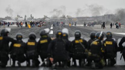 La ira de los manifestantes que han tomado las calles de Perú pone a prueba estos días la resistencia de la presidenta, Dina Boluarte. La muchedumbre ha cortado carreteras, dos aeropuertos y se enfrenta a las autoridades en distintos puntos del país. Sin embargo, la sucesora de Pedro Castillo, el mandatario encarcelado y acusado de rebelión por fomentar la semana pasada un autogolpe de Estado, se propone seguir en el cargo casi año y medio más antes de convocar unas elecciones. Los tiempos le parecen excesivos a sus críticos, que exigen que llame a las urnas de inmediato para elegir un nuevo Congreso y una Presidencia que trate de sacar a la nación de la profunda crisis institucional en la que está inmersa.